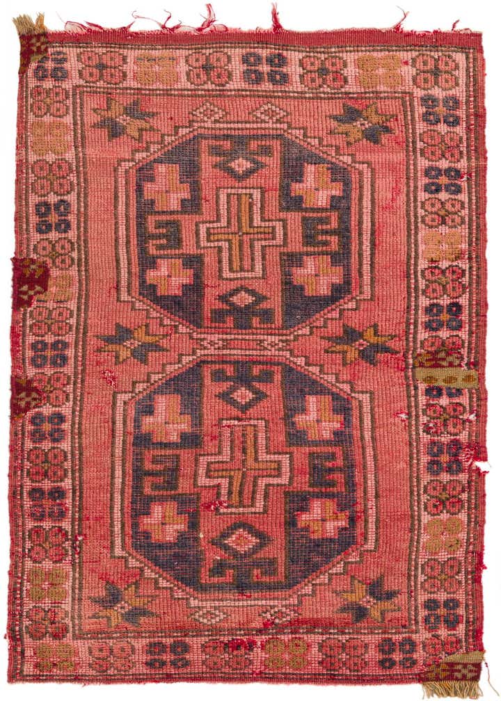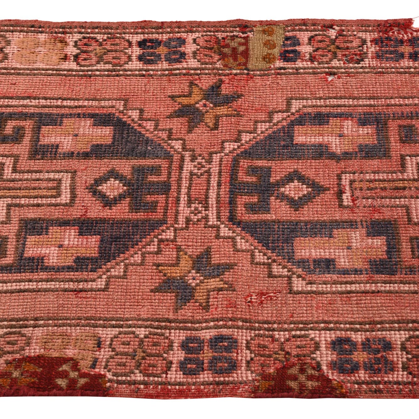 In Very Good condition, with Low Pile, Missing Fringe, Repair. Further details can be seen in the pictures