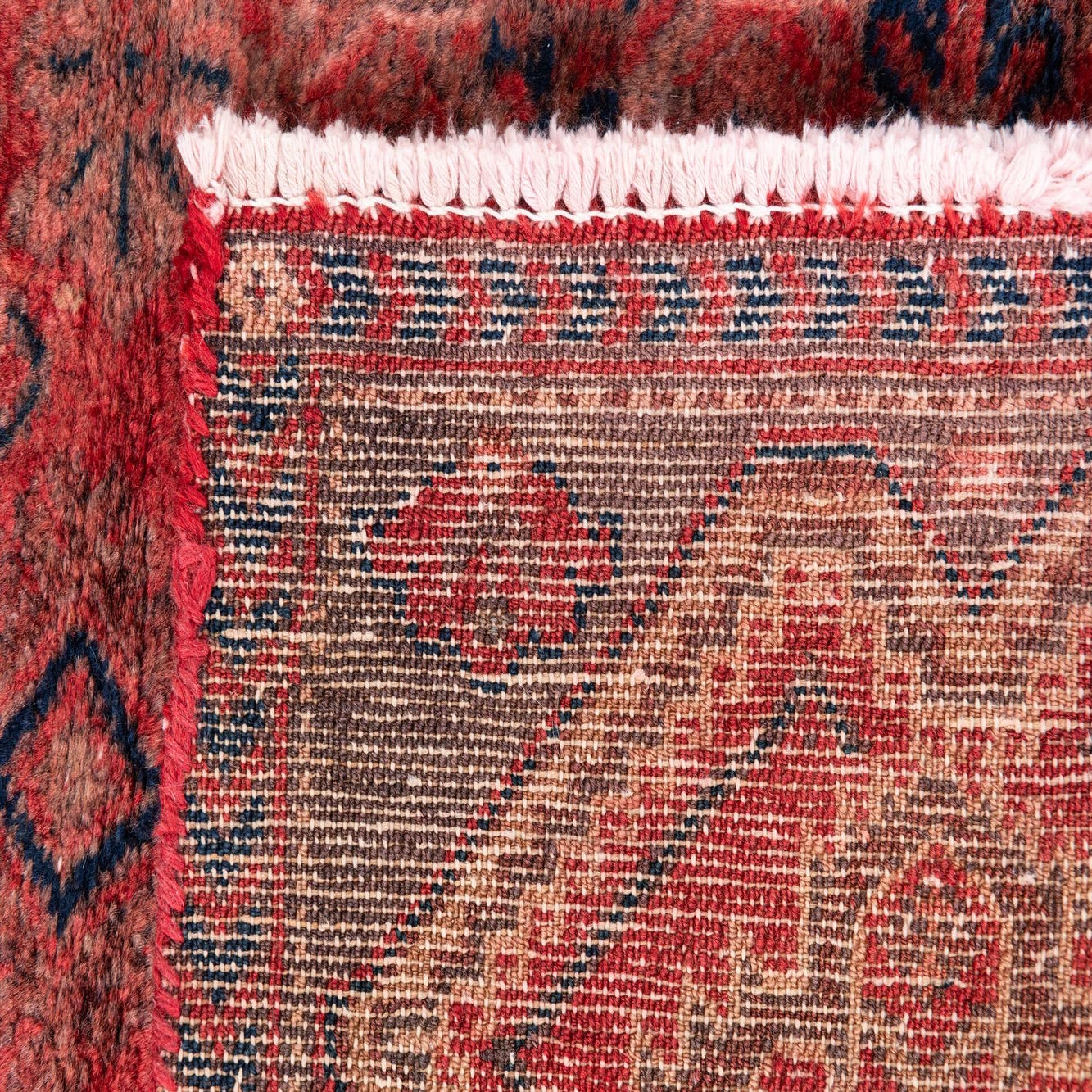 A 4 Ft Ultra Vintage Runner rug in red, featuring a distressed Persian pattern with blue and brown accents.