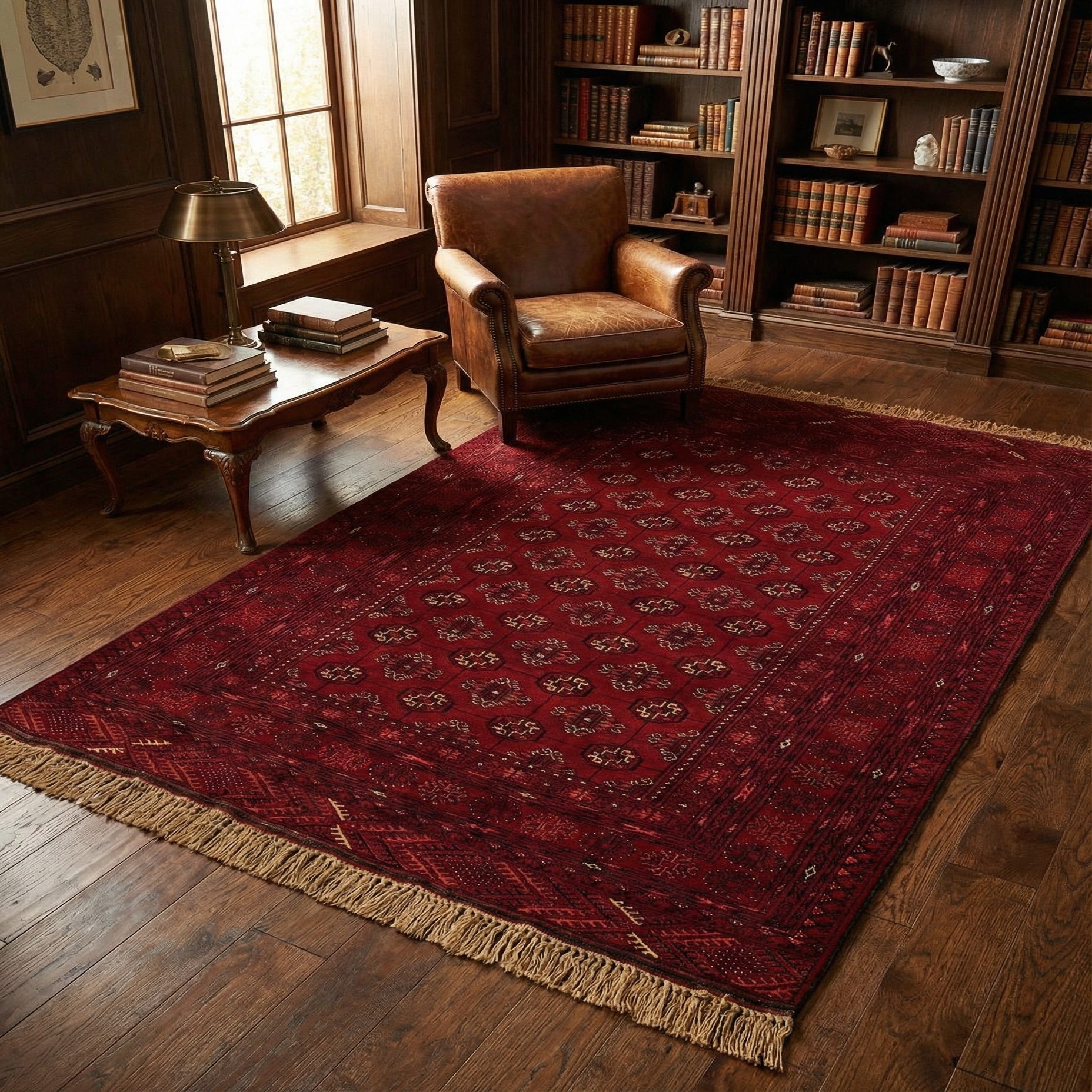4' 1 x 6' 3 Hand Knotted Afghan Akhche Wool Rug