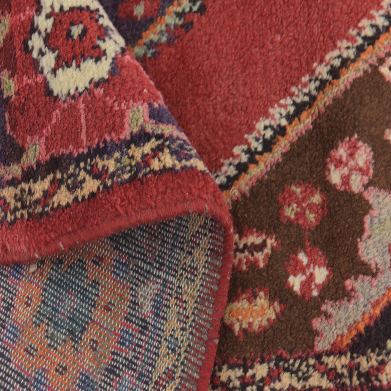 Primary color is Red. Colors in this rug include: Red, Black, Blue, Brown, Green, Ivory, Orange, Peach.