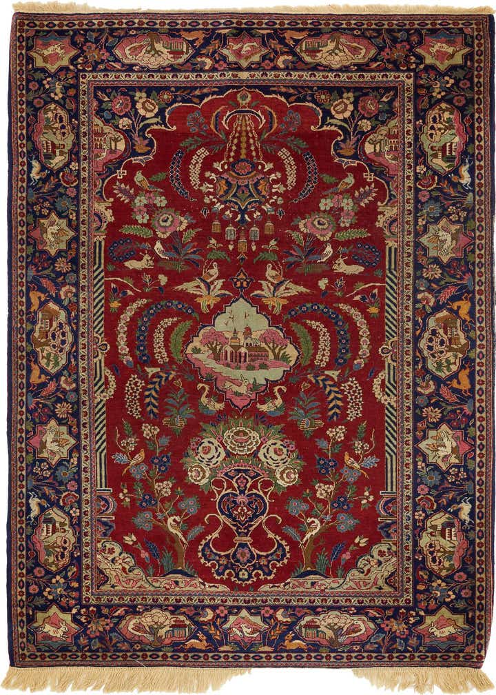4' 6 x 6' 7 Hand Knotted Isfahan Persian Wool Rug