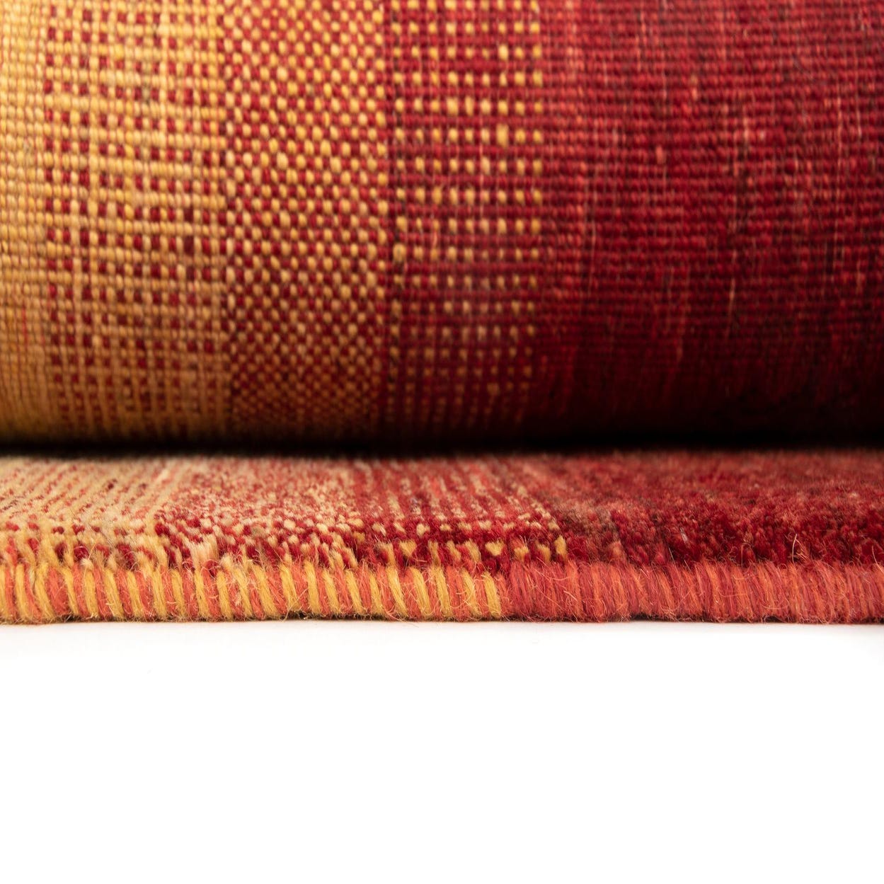 The Kashkuli collection features a hand-made, 4x6 wool rug that boasts a richly-hued red background. It is adorned with a harmonious blend of geometric and abstract motifs, interspersed with small, delicate patterns that add visual interest without overwhelming the design. The varied shades of red create a warm and inviting surface, while the subtle incorporation of multicolored elements within the geometry gives the rug a unique character.