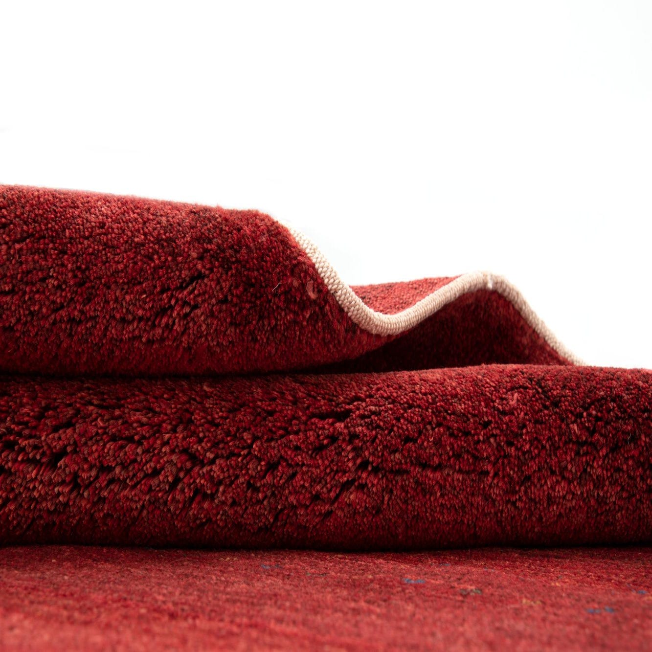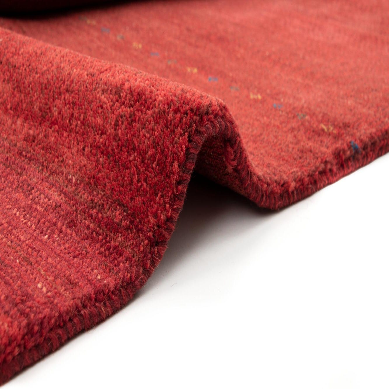 A 4x6 rectangular Rugs.com Kashkuli wool rug in a rich, solid red hue with subtle variations.