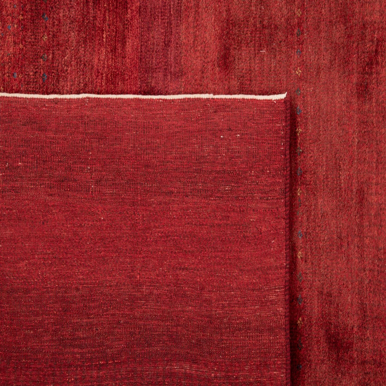 The Kashkuli collection presents a hand-made woolen rug that offers a solid, bold red background with subtle, intricate blue details woven throughout. This 4x6 piece exudes a sense of warmth and richness, providing a robust color addition to any room. The rug has a texture that boasts the quality craftsmanship of traditional techniques, with a soft and inviting feel underfoot.