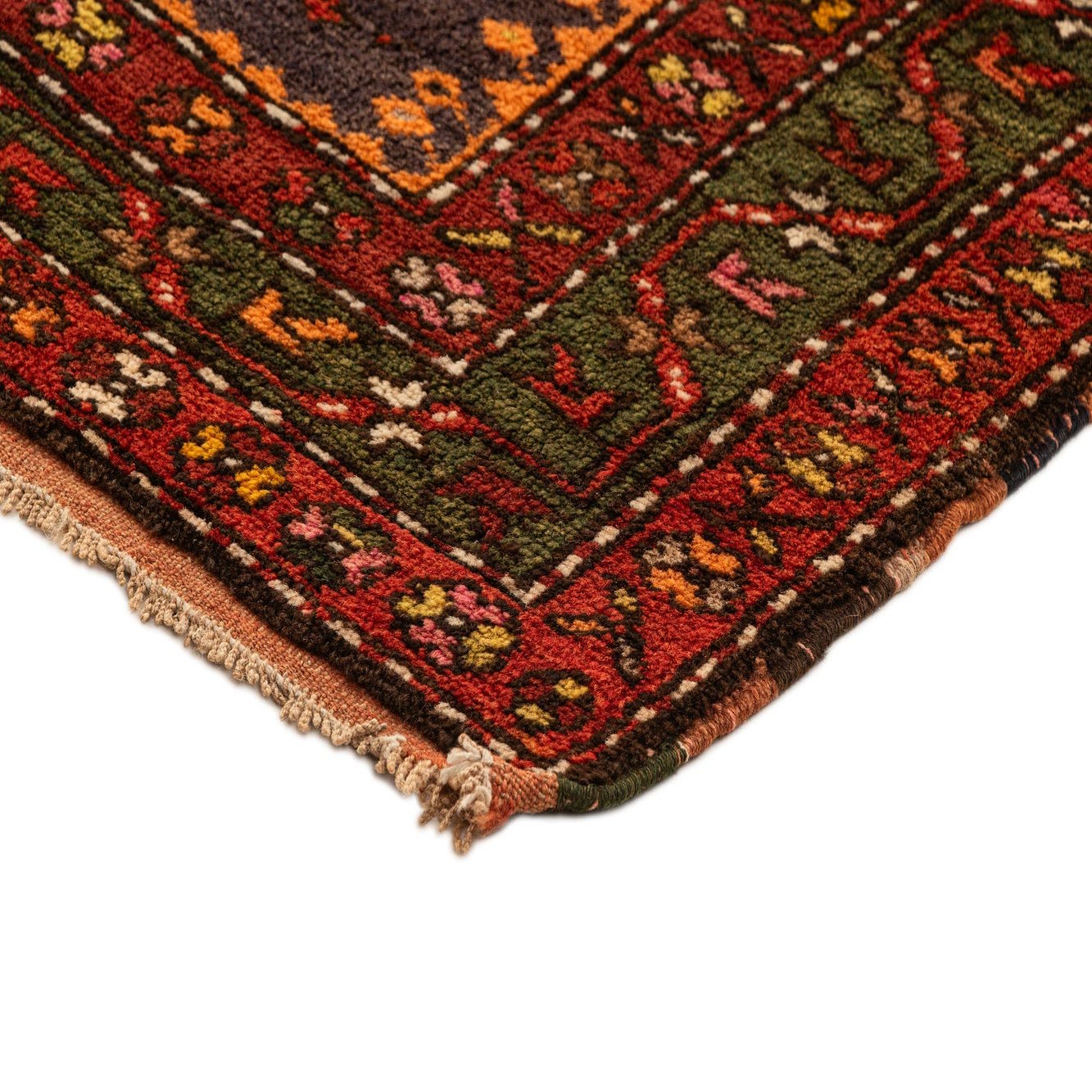 A 4x6 rectangular handmade Kazak rug with a traditional geometric pattern in reds, greens, and dark blue.