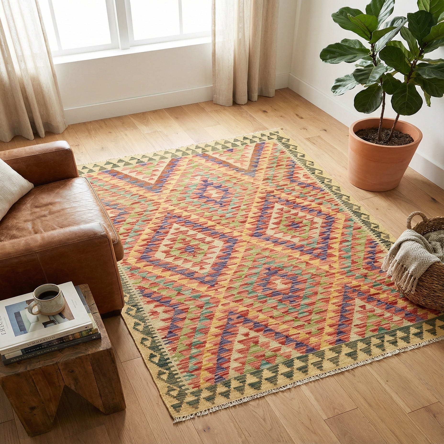 3' 6 x 4' 10 Hand Woven Kilim Maymana Wool Rug