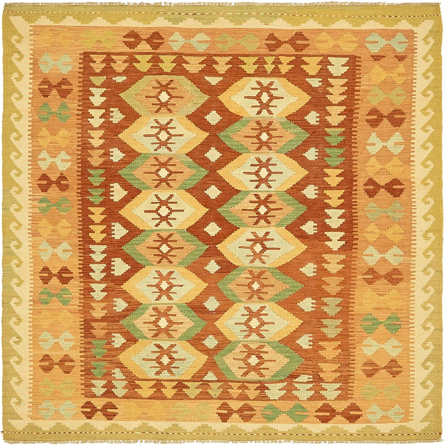 4' 9 x 6' 5 Hand Woven Kilim Waziri Wool Rug