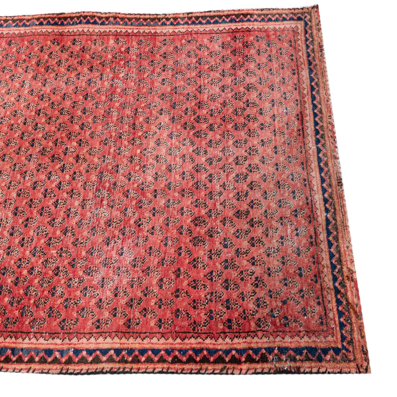 This Persian Ultra Vintage rug is an antique Persian Rug that has been washed, over-dyed, and then shaved down to a low pile. Look at the detail pictures to fully appreciate the uniqueness of this piece.