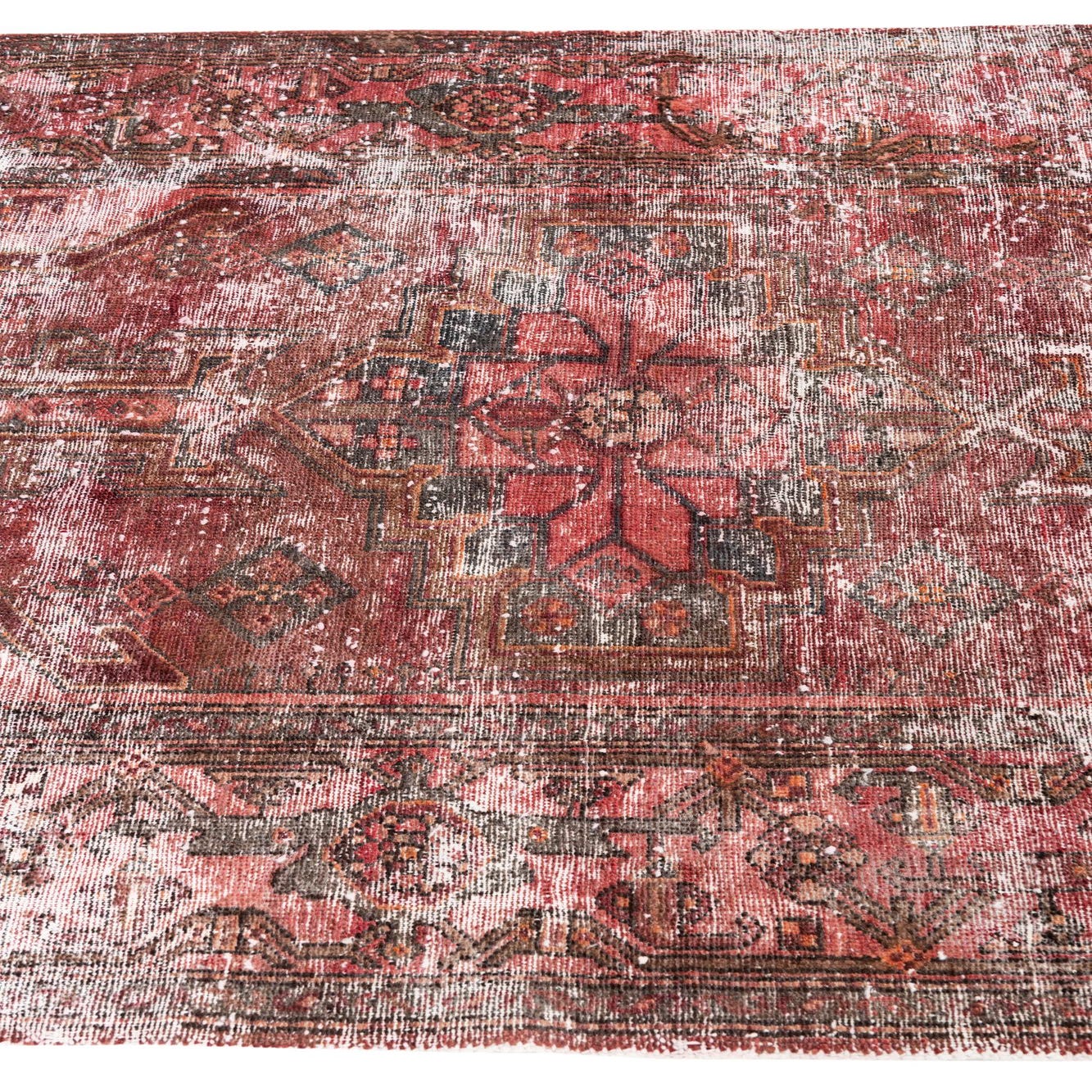 This Persian Ultra Vintage rug is an antique Persian Rug that has been washed, over-dyed, and then shaved down to a low pile. Look at the detail pictures to fully appreciate the uniqueness of this piece.