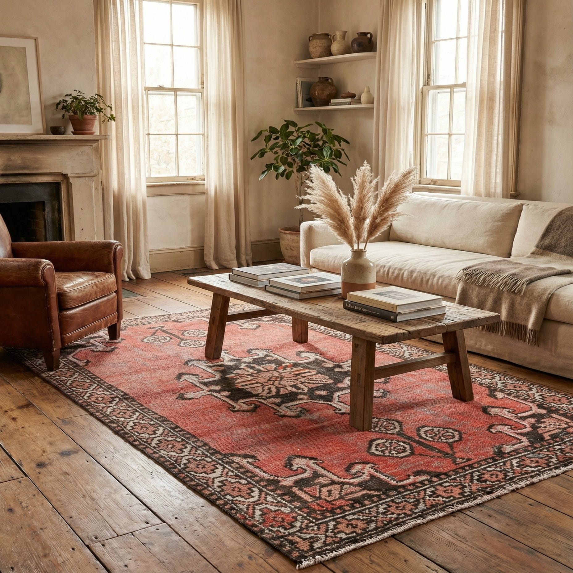 Versatile in its design, this rug would complement various interior spaces, from traditional settings that aim to highlight a connection to heritage, to eclectic environments where it can add depth and a sense of history. It would serve as a focal point in a minimalist room, or blend seamlessly with the rich textures and wood elements in a rustic or bohemian decor. Its size and visual impact make it an ideal choice for enhancing living rooms, home offices, or intimate dining areas.