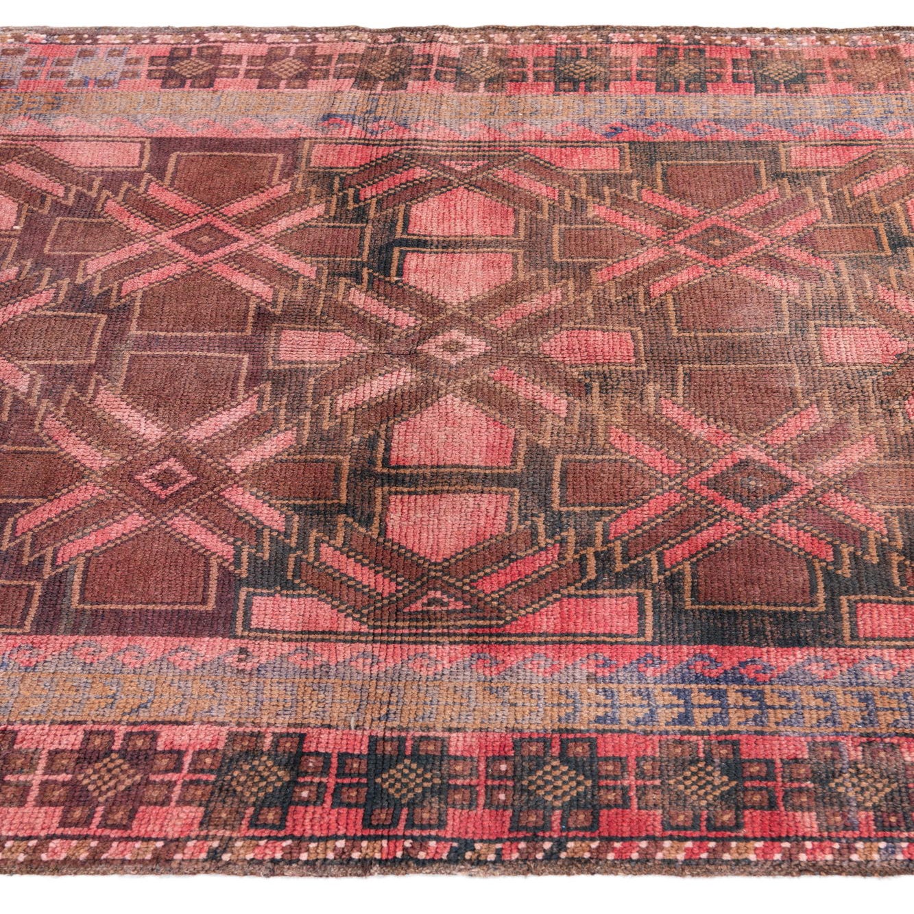 Primary color is Red. Colors in this rug include: Red, Brown, Burgundy, Black.