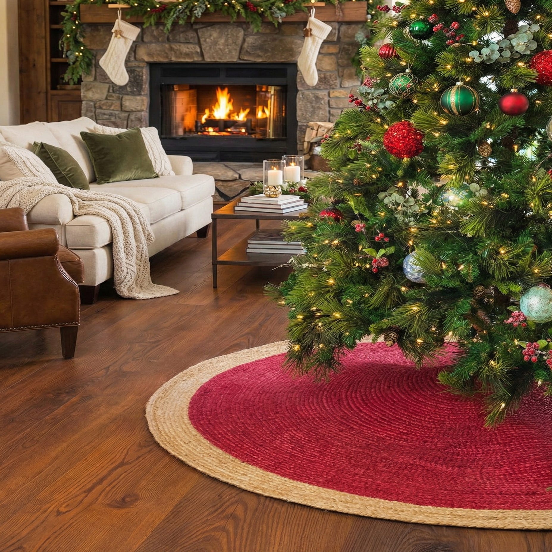 This style works well with farmhouse and cottage interiors where warm, natural materials are a focal point, and it complements hardwood or stone floors without competing with other patterns. It also pairs nicely with traditional holiday decor—layer it beneath a decorated tree for a timeless touch—or use it in rustic cabins and boho spaces that emphasize woven textures and earthy color palettes.