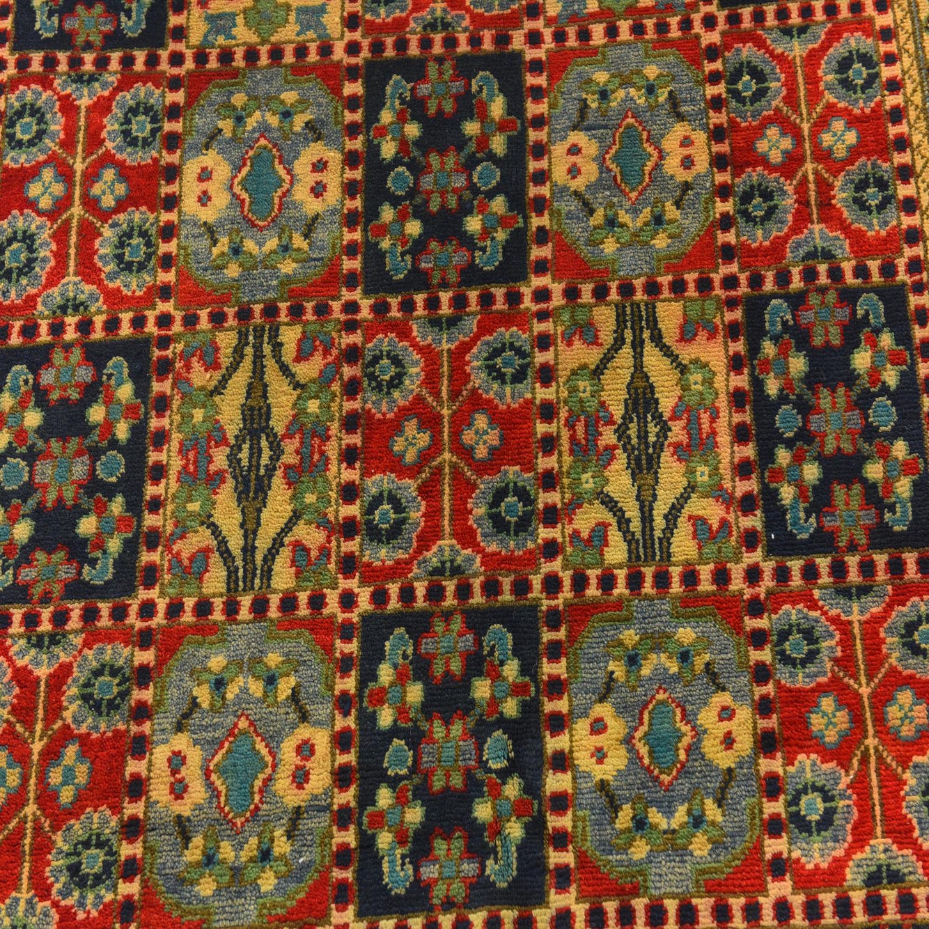 A 5x7 rectangular Rugs.com Kazak rug with a traditional Southwestern pattern in reds, blues, and gold.