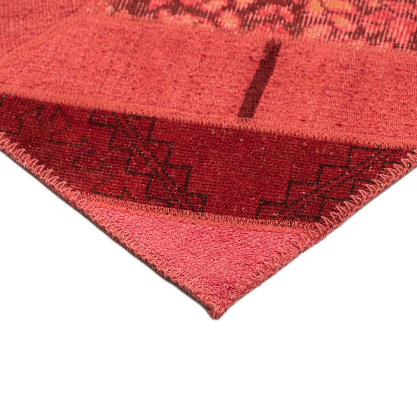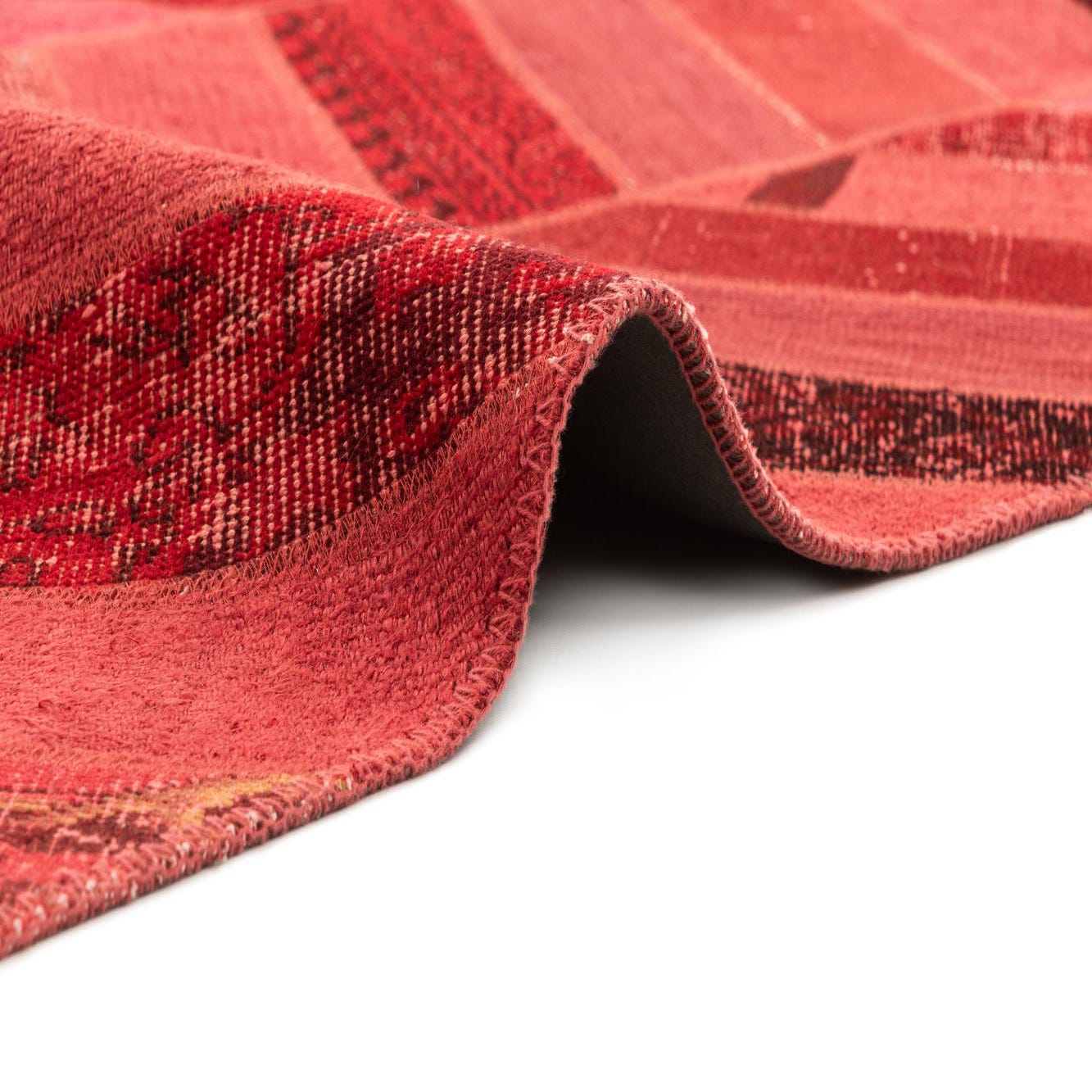 This rug works well as a focal anchor in a living room beneath a sofa and coffee table, or layered in a bedroom to introduce bold color and texture. It pairs cleanly with mid-century modern wood pieces and neutral upholstery, and also complements industrial or eclectic interiors where contrast and warmth are needed. Use it to bring a dramatic yet refined pop of red into a dining area, home office, or entryway.
