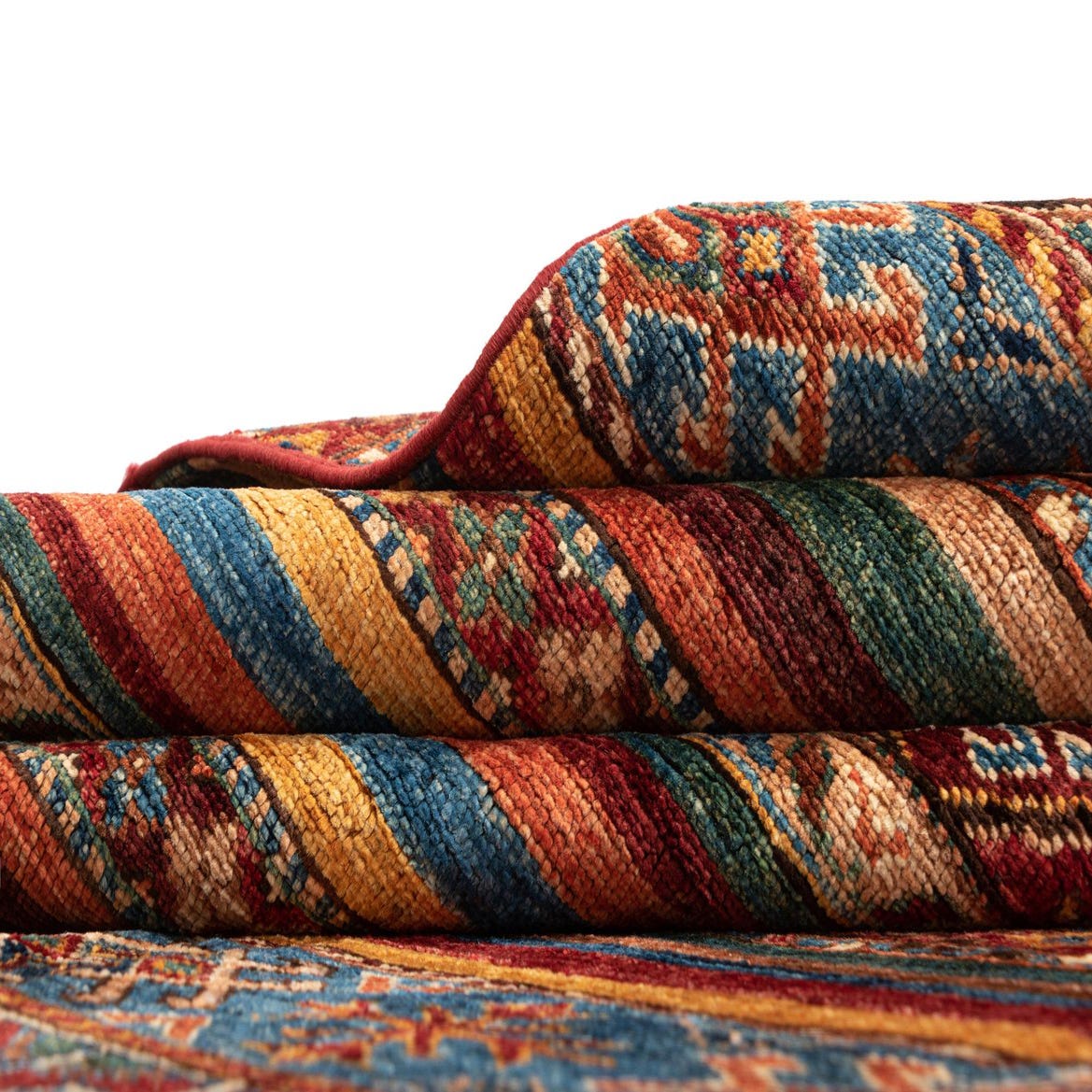 With a texture that is indicative of its hand-made construction, the rug's weave contributes to its authentic, handcrafted appeal. This quality piece is well-suited for spaces seeking to introduce color and artisanal charm, such as traditional living rooms, dining areas with classic wood furniture, or cozy libraries. Its variety of colors allows it to easily integrate into interiors with earthy tones or serve as a contrasting element in more neutral settings. The Ariana Ziegler rug is a versatile choice that complements a range of decor scenarios, providing a sophisticated and timeless foundation for your space.