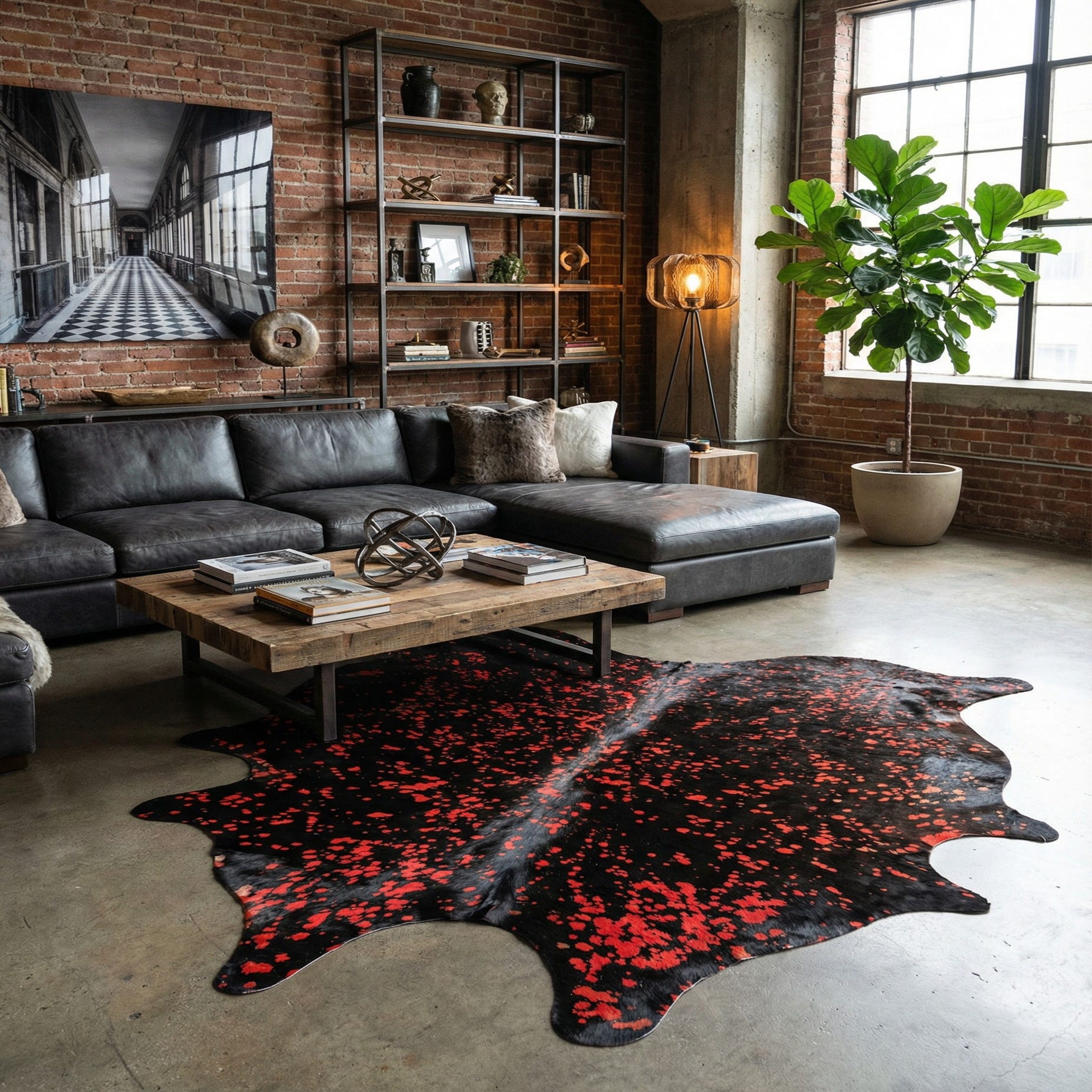6' 3 x 7' Cowhide Leather Rug