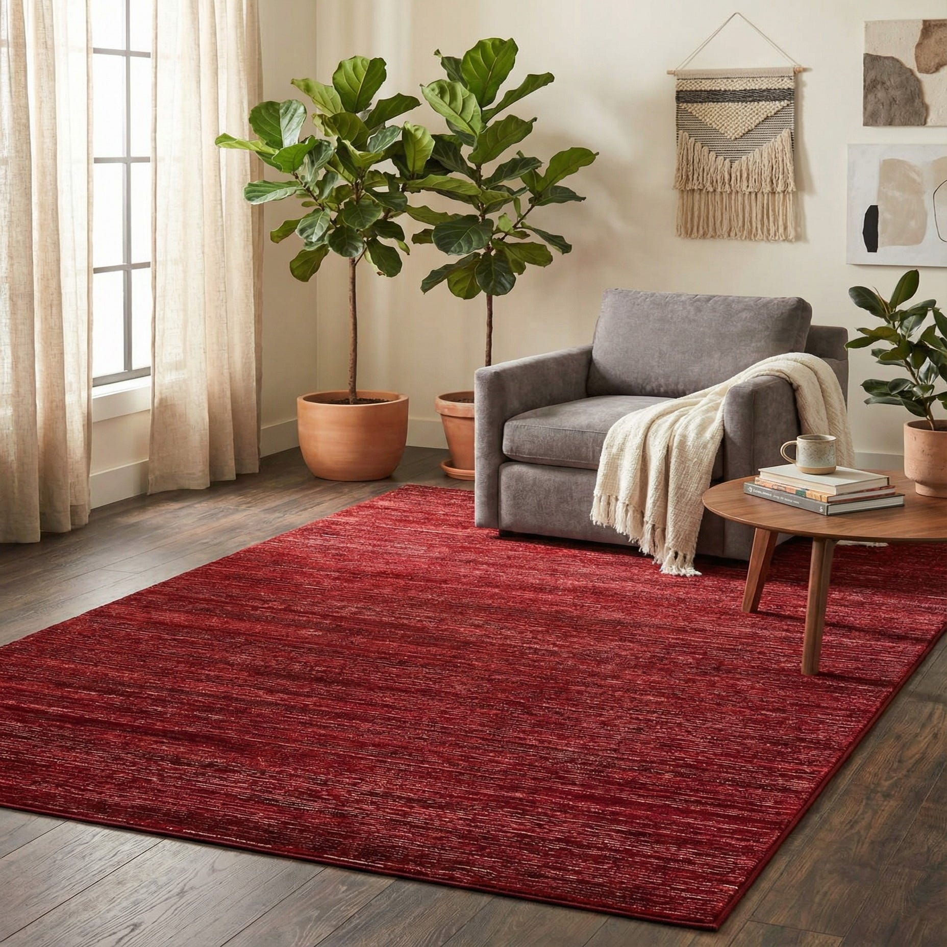 Ideal for various interior design scenarios, this rug can serve as a focal point in a neutral-toned living space or complement bolder decors with its vibrant red coloration. Its simplicity and texture make it suitable for transitional spaces, contemporary settings, or as a warm accent in minimalist designs. Additionally, the stain-resistant and shed-free properties ensure that the rug maintains its appearance, even in high-traffic areas.
