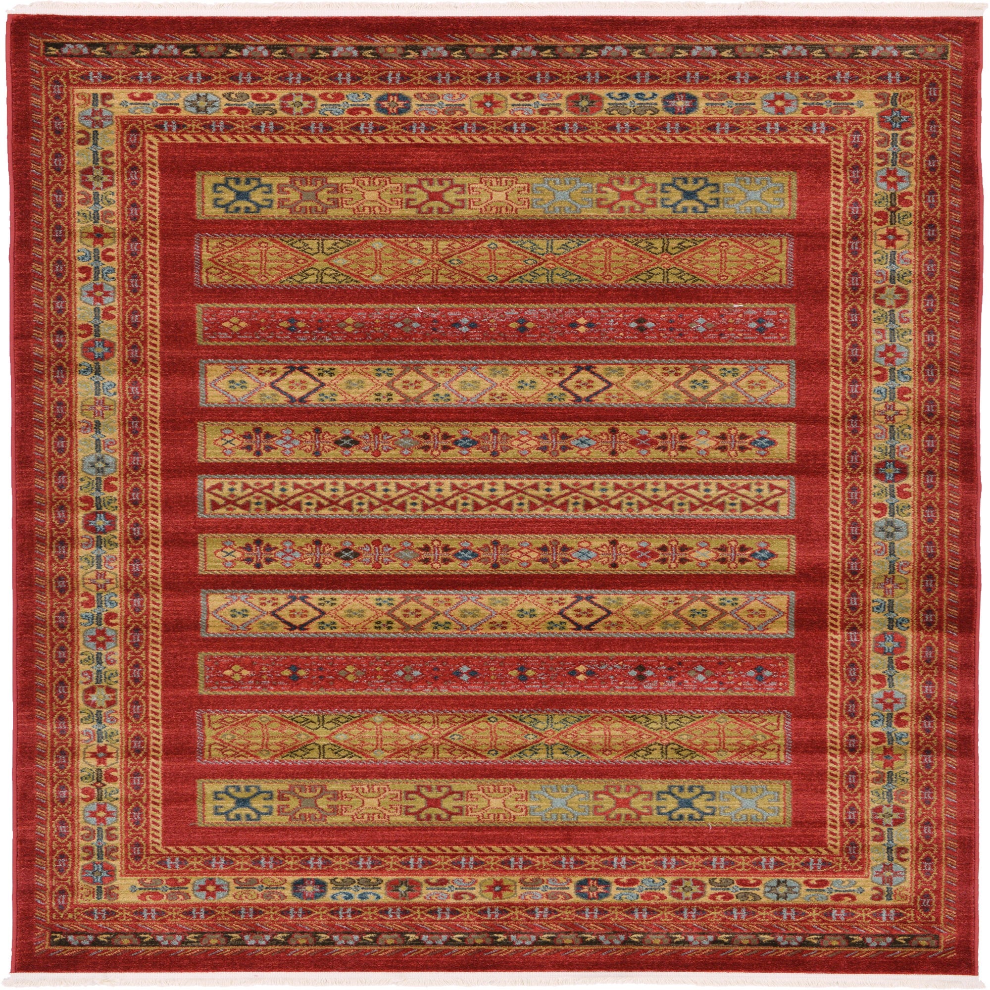 Primary color is Red. Colors in this rug include: Red, Blue, Light Blue, Light Green, Tan.