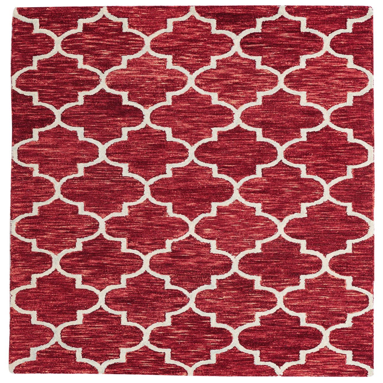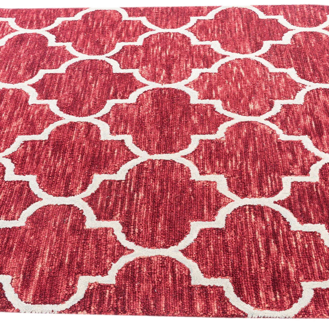 The Luna Collection presents a refined 5x8 hand-tufted rug crafted from a harmonious blend of wool and cotton, ensuring a resilient yet soft underfoot experience. This piece showcases a red background accented by an ivory trellis pattern, offering a bold visual statement that anchors the aesthetic of any space. The texture provides a tactile quality that enhances the rug's overall presence, while the distinct pattern contributes a touch of geometric sophistication suitable for various interior design themes.