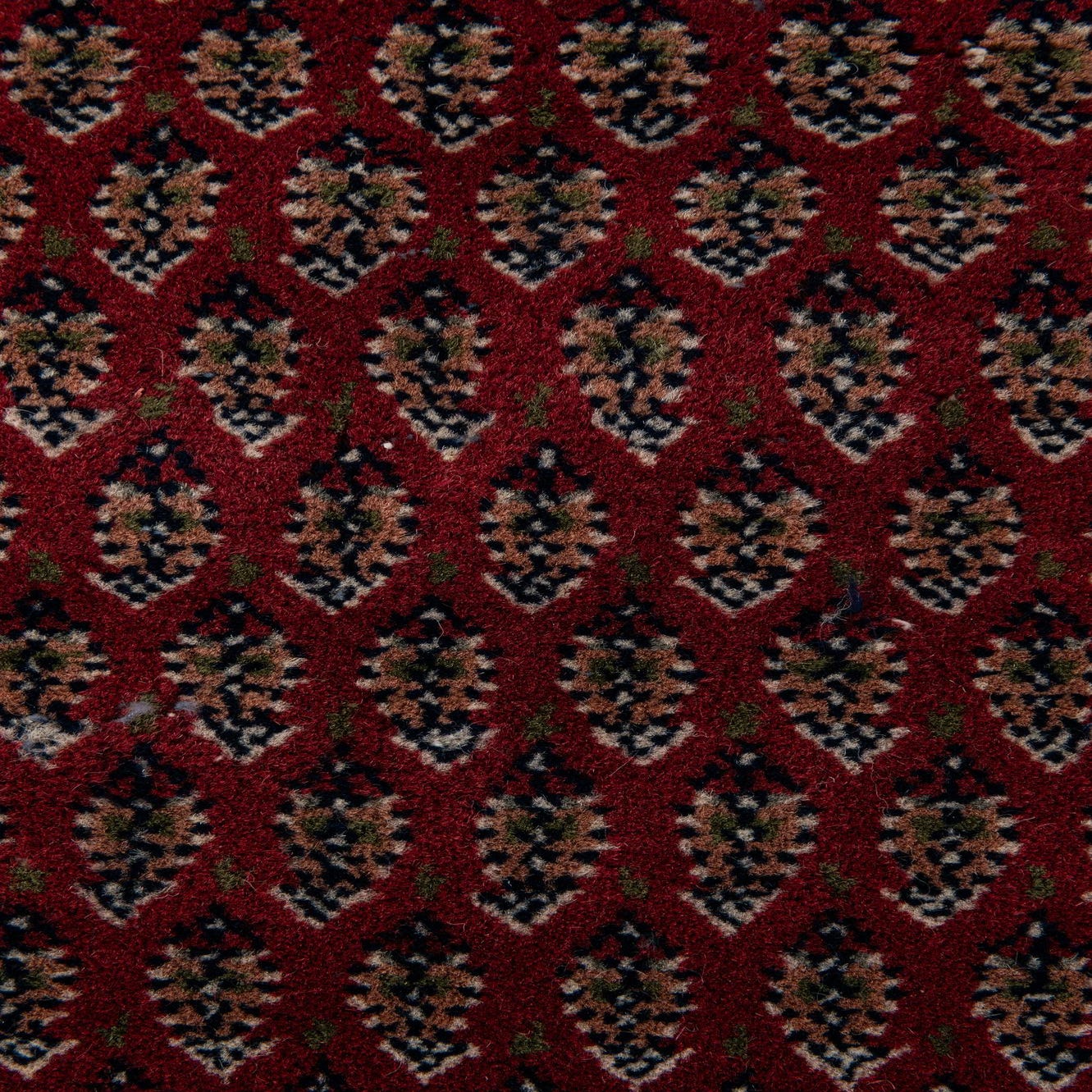 Primary color is Red. Colors in this rug include: Red, Brown, Green, Ivory, Navy Blue, Pink.