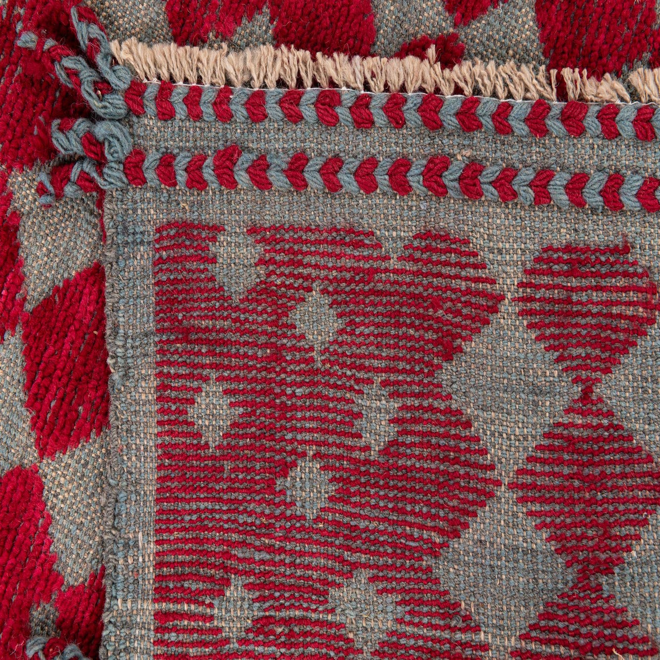 Primary color is Red. Colors in this rug include: Red, Gray.