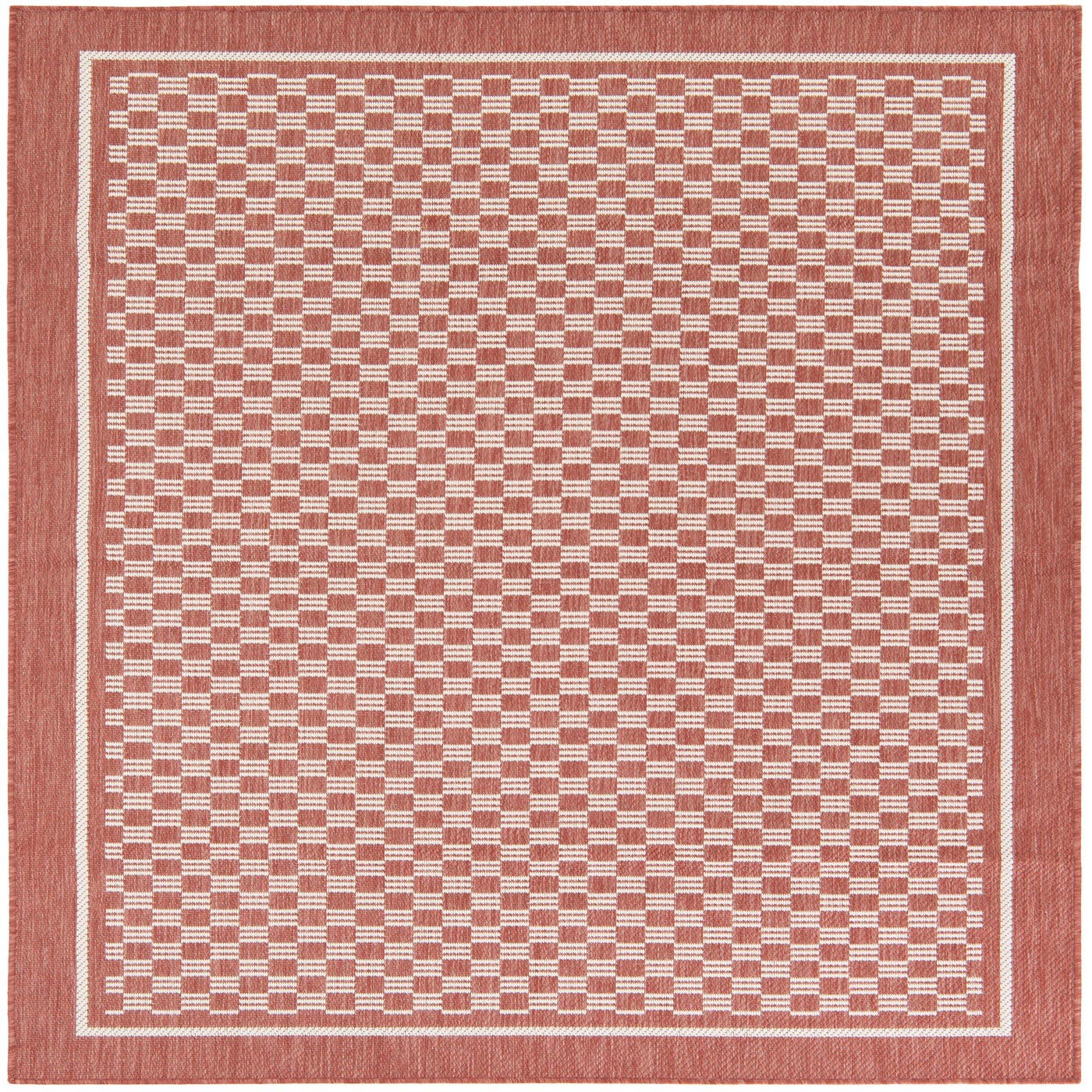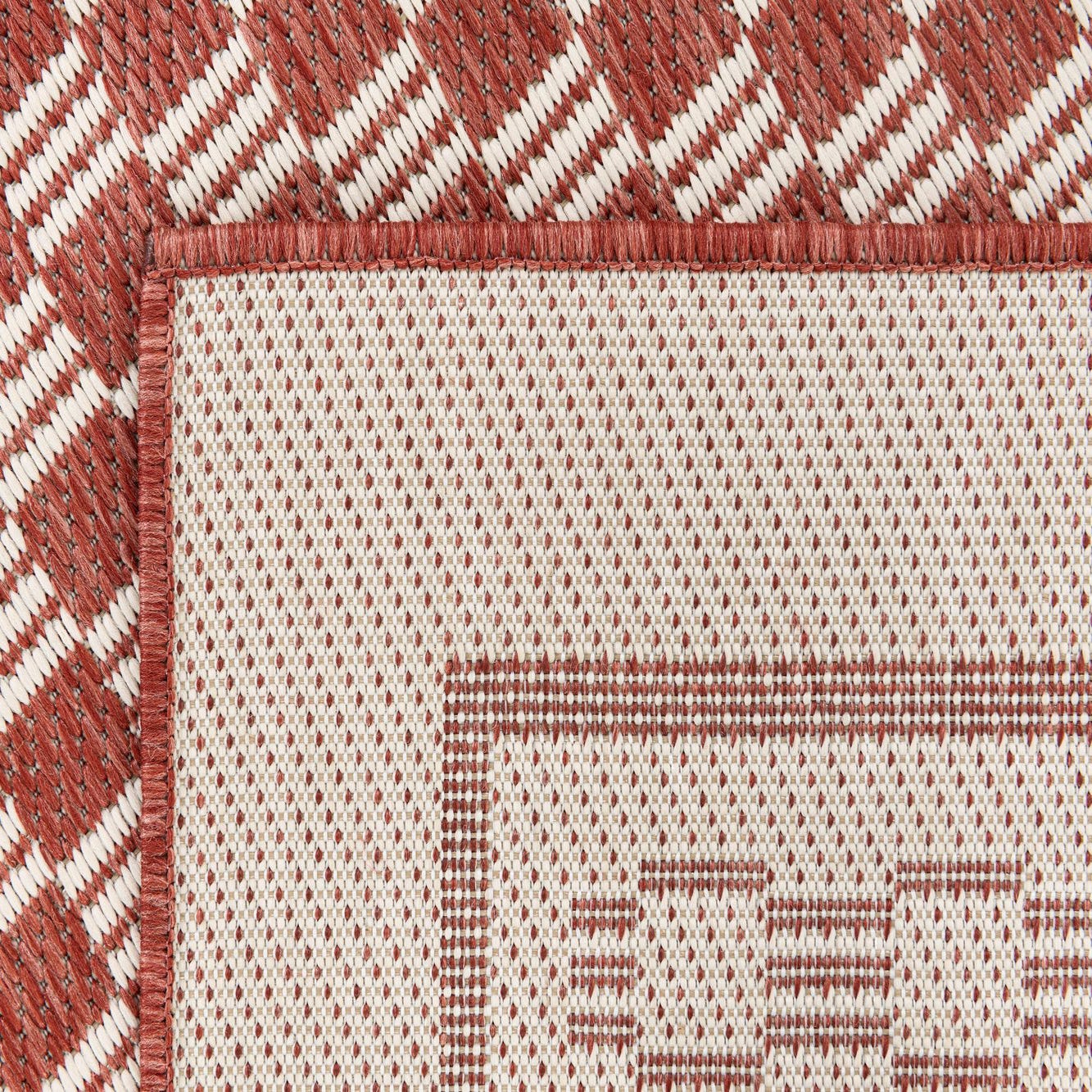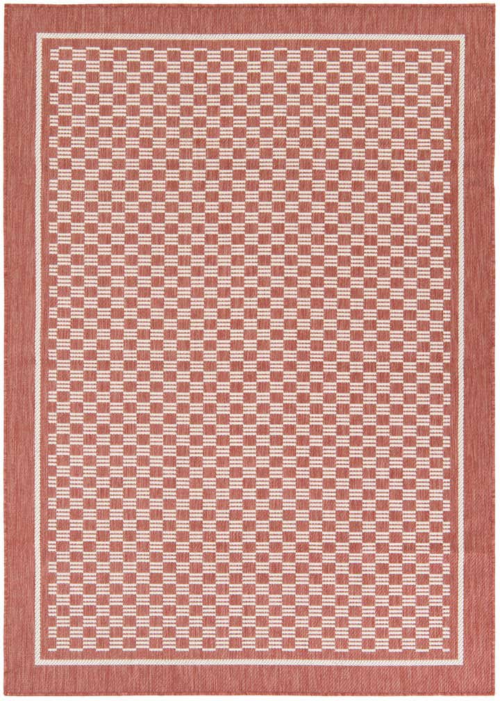 Primary color is Red. Colors in this rug include: Red, Ivory.