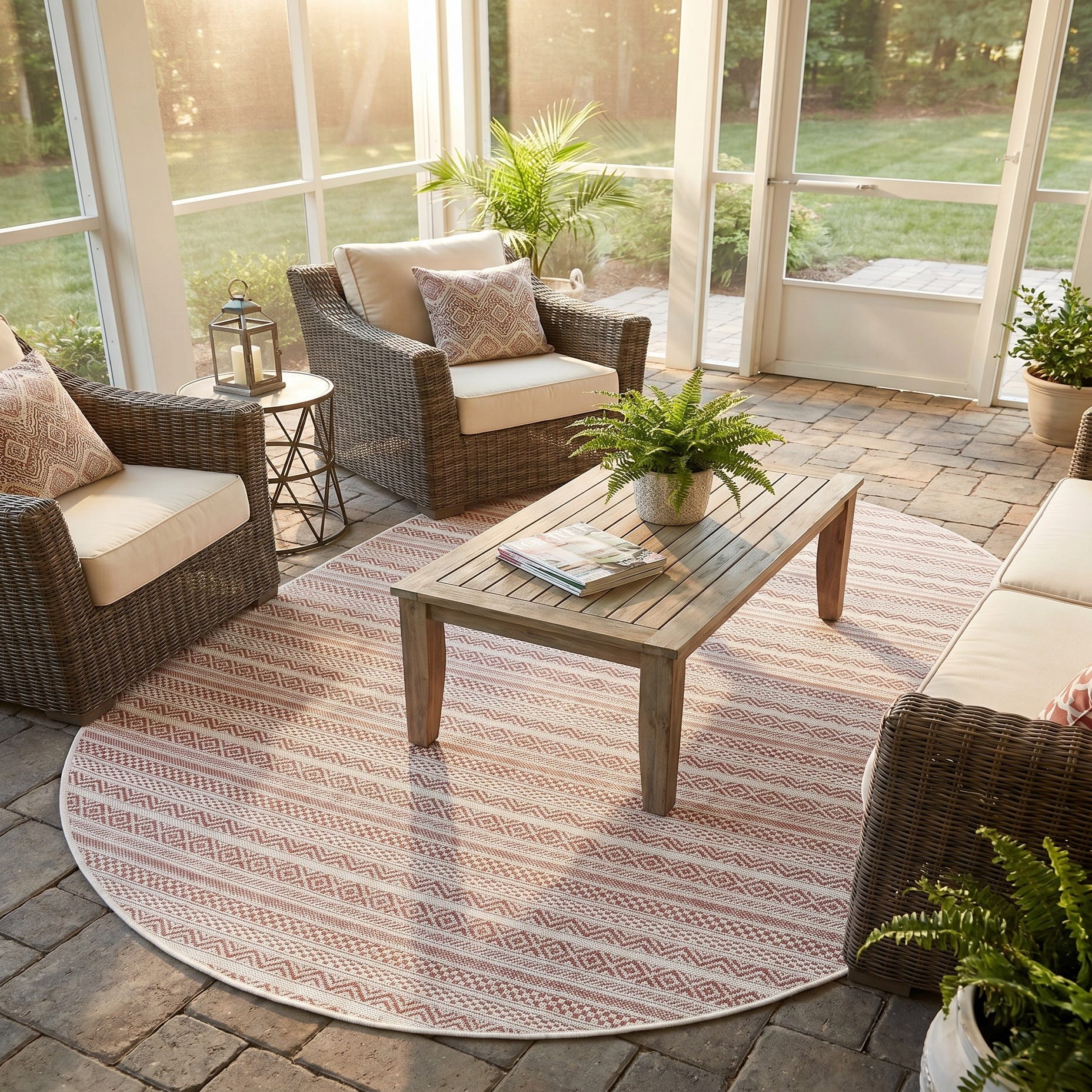 I bought these rugs to brighten up my patio they arrived within a few days and look amazing! Easy to clean and durable.