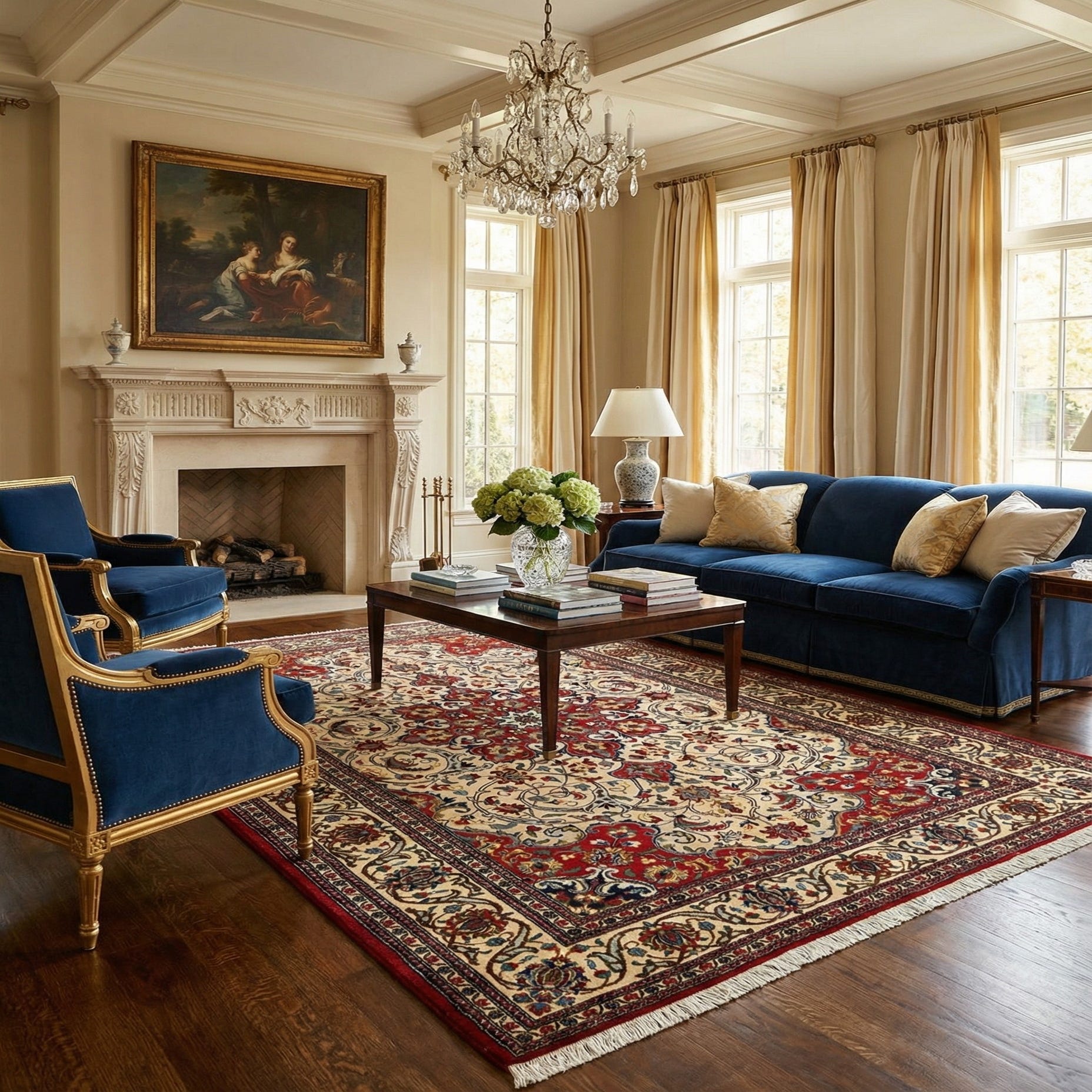 With its classic style and opulent design, this rug can be seamlessly integrated into interiors that lean towards the traditional, such as living rooms with classic wood furniture, dining spaces that aim for a stately ambiance, or refined home offices. Additionally, its bold colors and patterns can serve as a focal point within minimalist decors, adding warmth and character to modern spaces seeking a blend of contemporary and timeless touches.