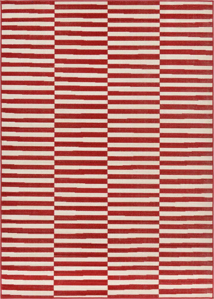 Primary color is Red. Colors in this rug include: Red, Ivory.