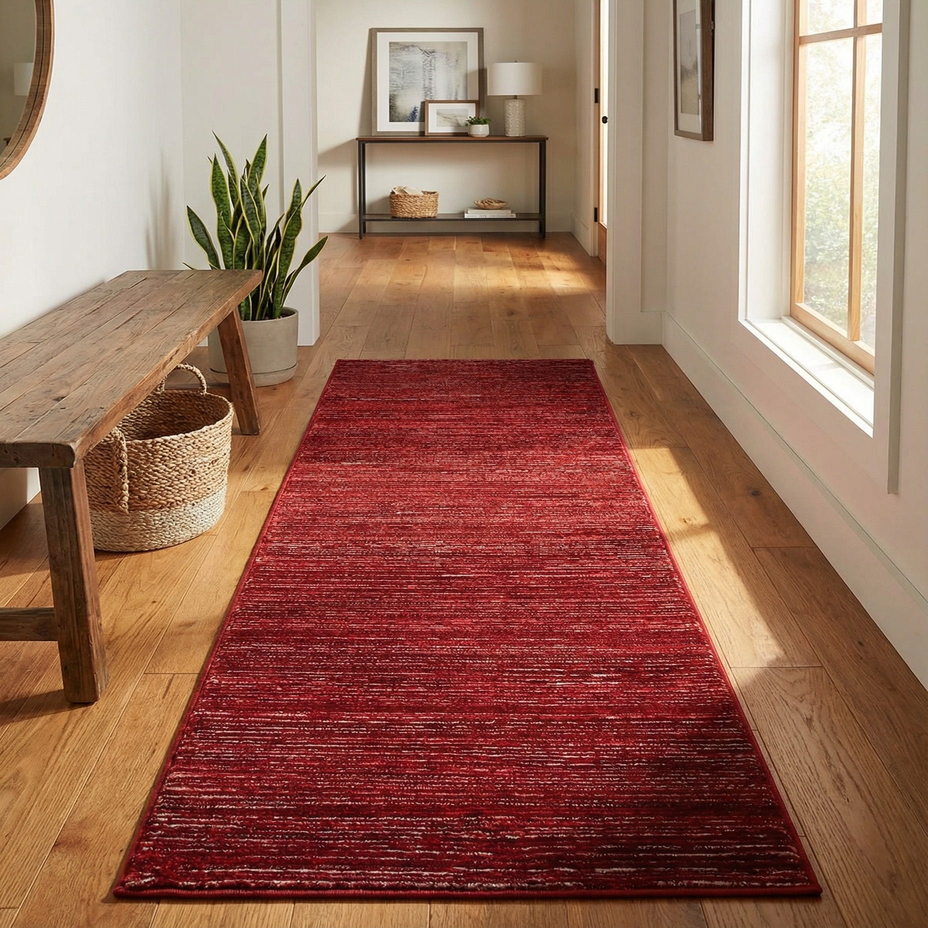 Ideal for hallways, entryways, or running alongside a bed, this runner brings color and texture to narrow areas. Pair it with warm wood floors and neutral furnishings to let the red act as an anchor, or combine it with black metal accents and leather for a contemporary, urban look. It also layers well over a larger neutral rug or under a console table to introduce warmth and cohesion to transitional or modern interiors.