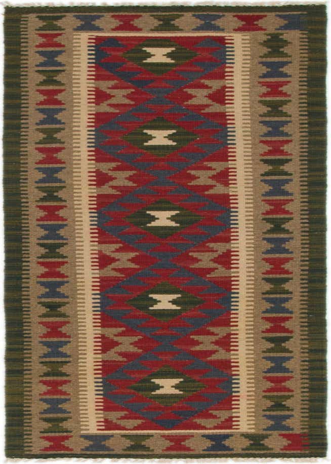 Primary color is Red. Colors in this rug include: Red, Beige, Brown, Ivory, Navy Blue, Hunter Green.