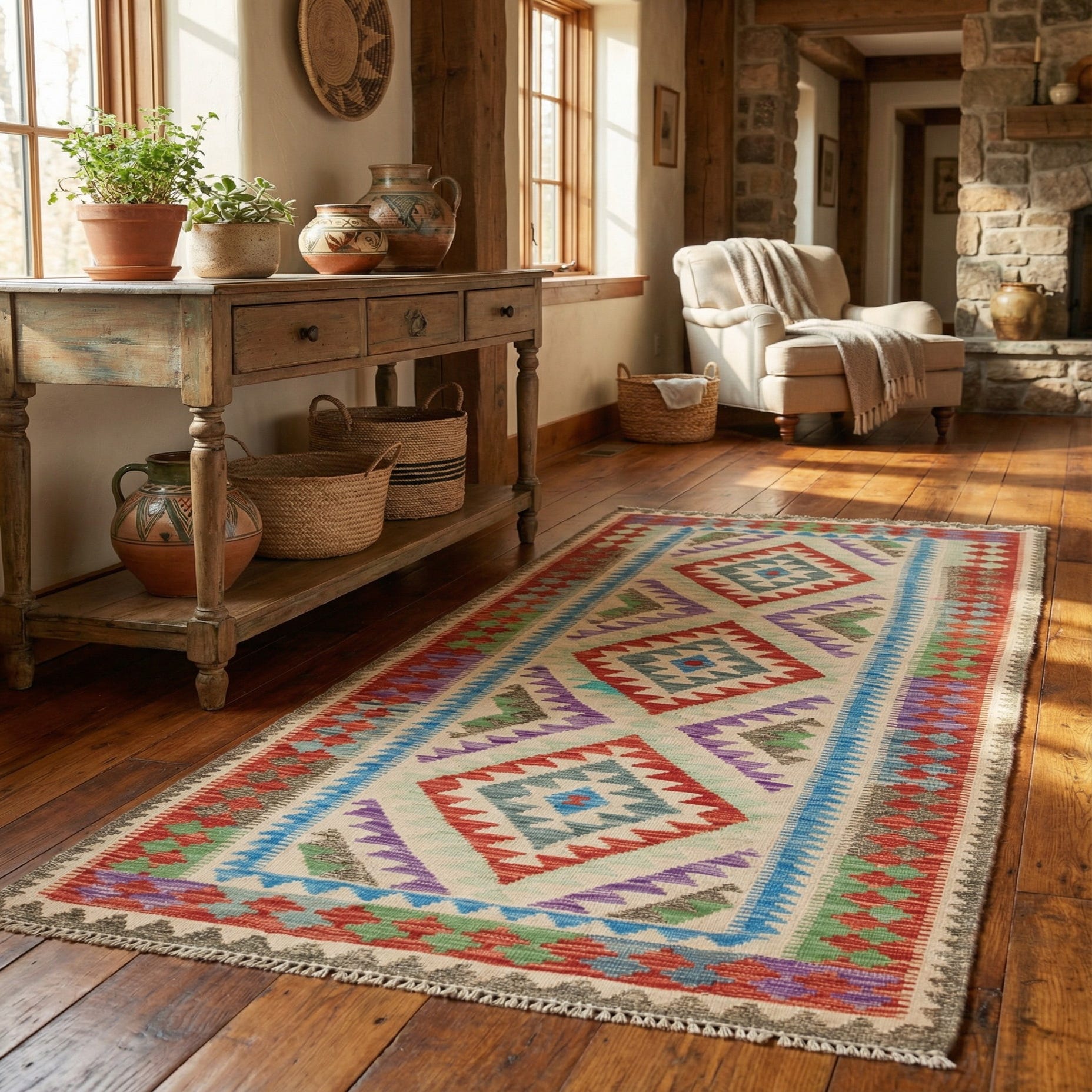 3' 2 x 6' 6 Hand Woven Kilim Maymana Wool Runner Rug