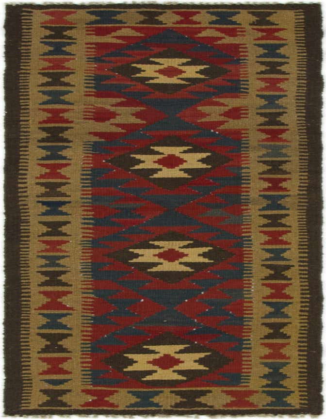 Primary color is Red. Colors in this rug include: Red, Beige, Brown, Ivory, Navy Blue.