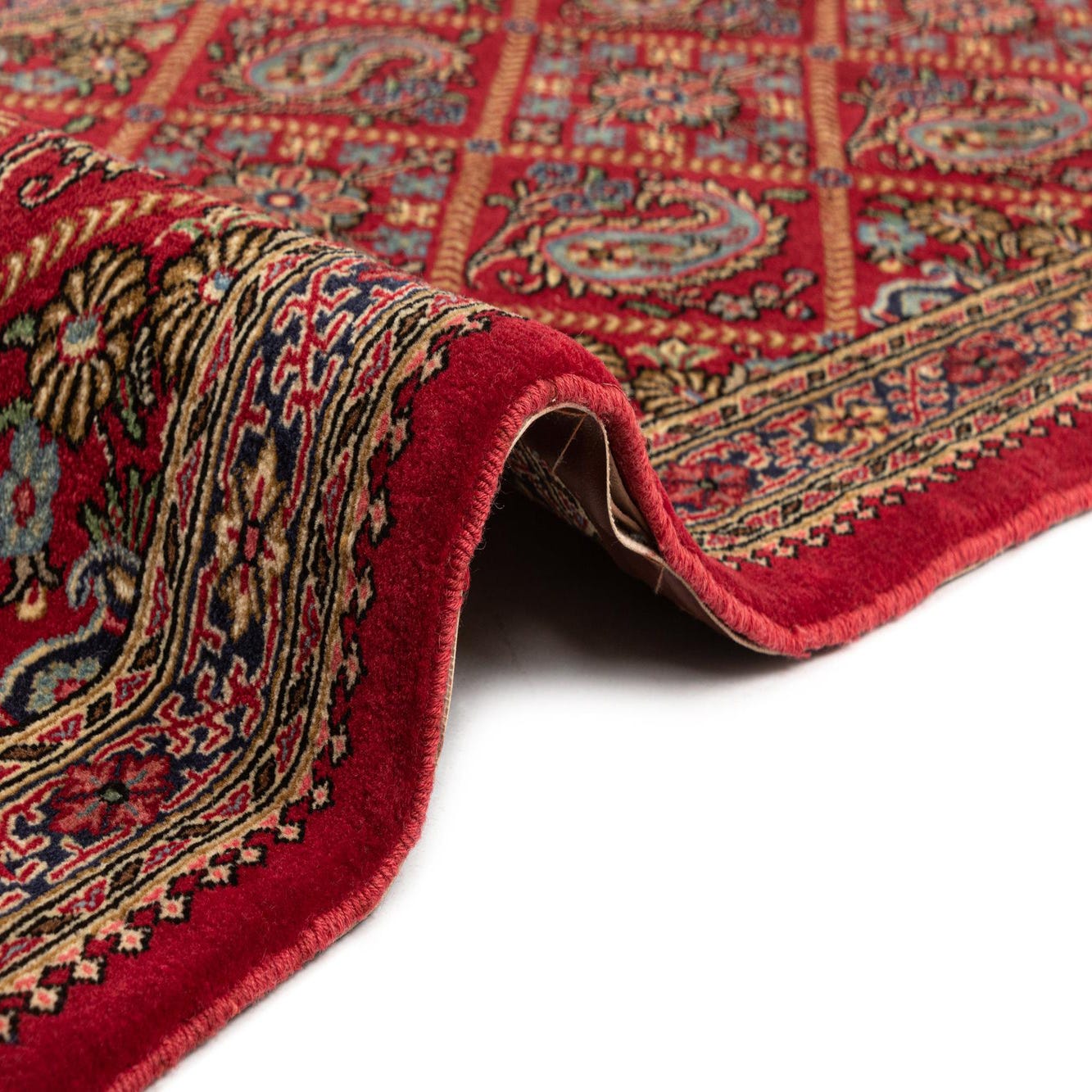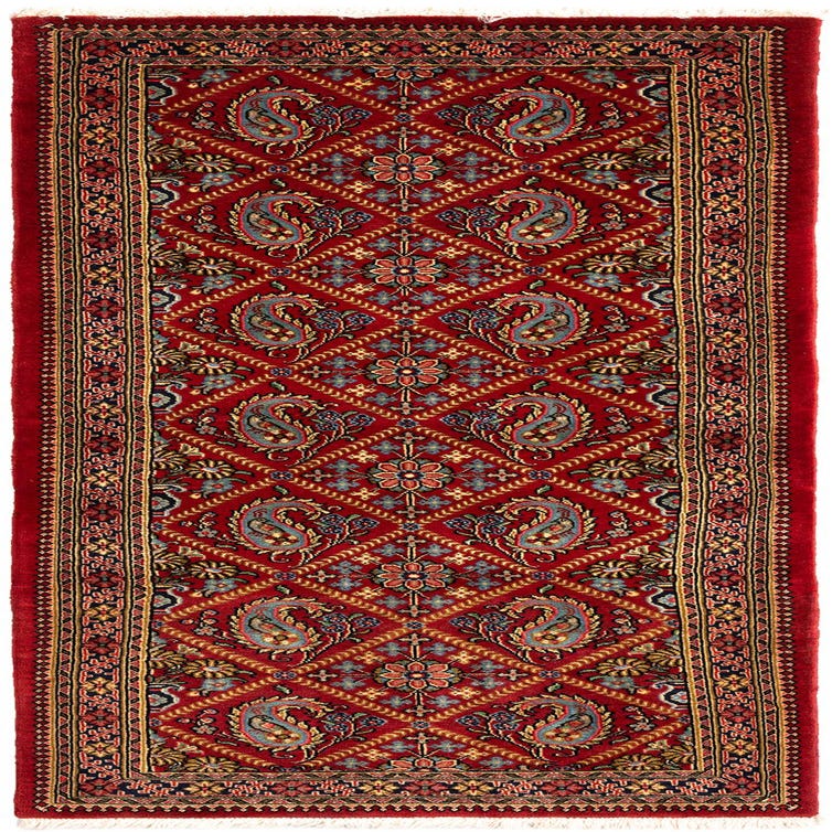 A 6 ft red wool runner rug with a traditional Persian pattern, featuring intricate floral and paisley motifs.