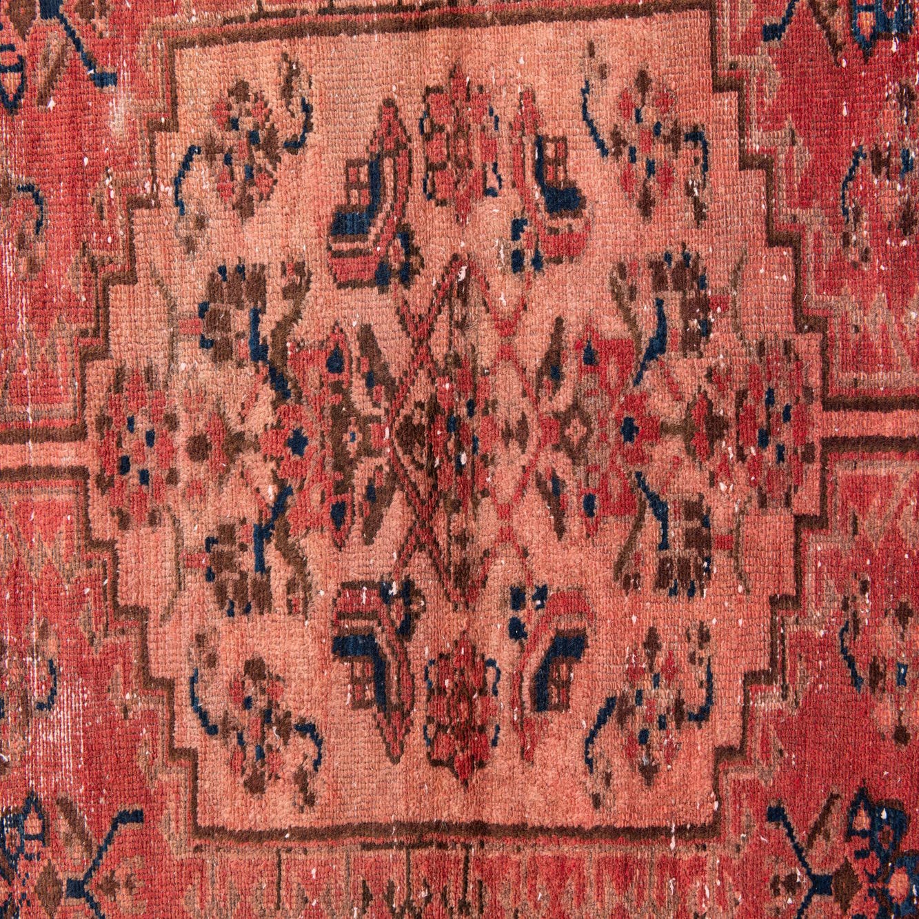 A 6 ft red Persian runner rug with a central medallion and intricate floral patterns in blue and brown, ideal for a hallway.