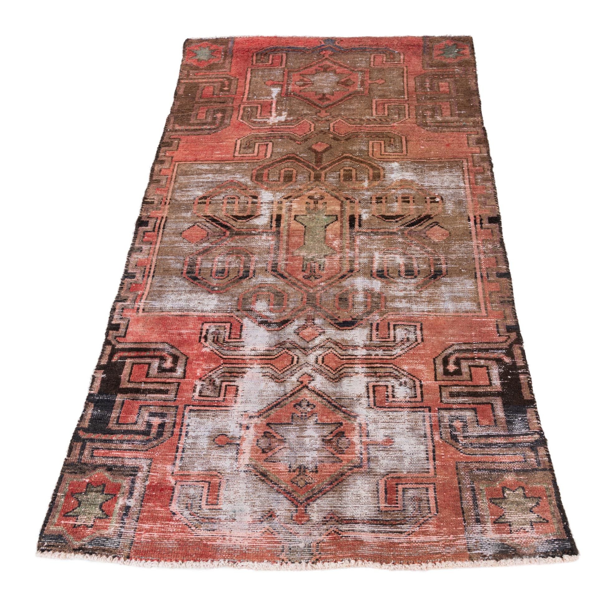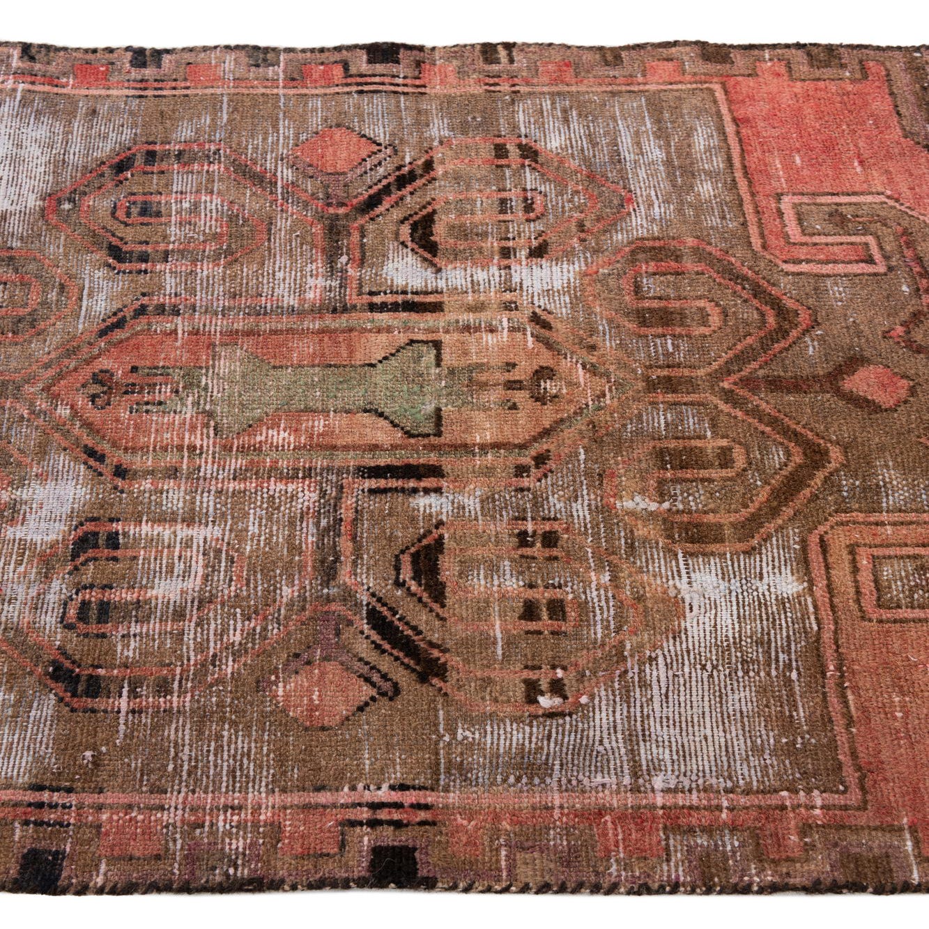 A 6 ft runner rug featuring a distressed Persian medallion pattern in shades of red, brown, and hints of green.