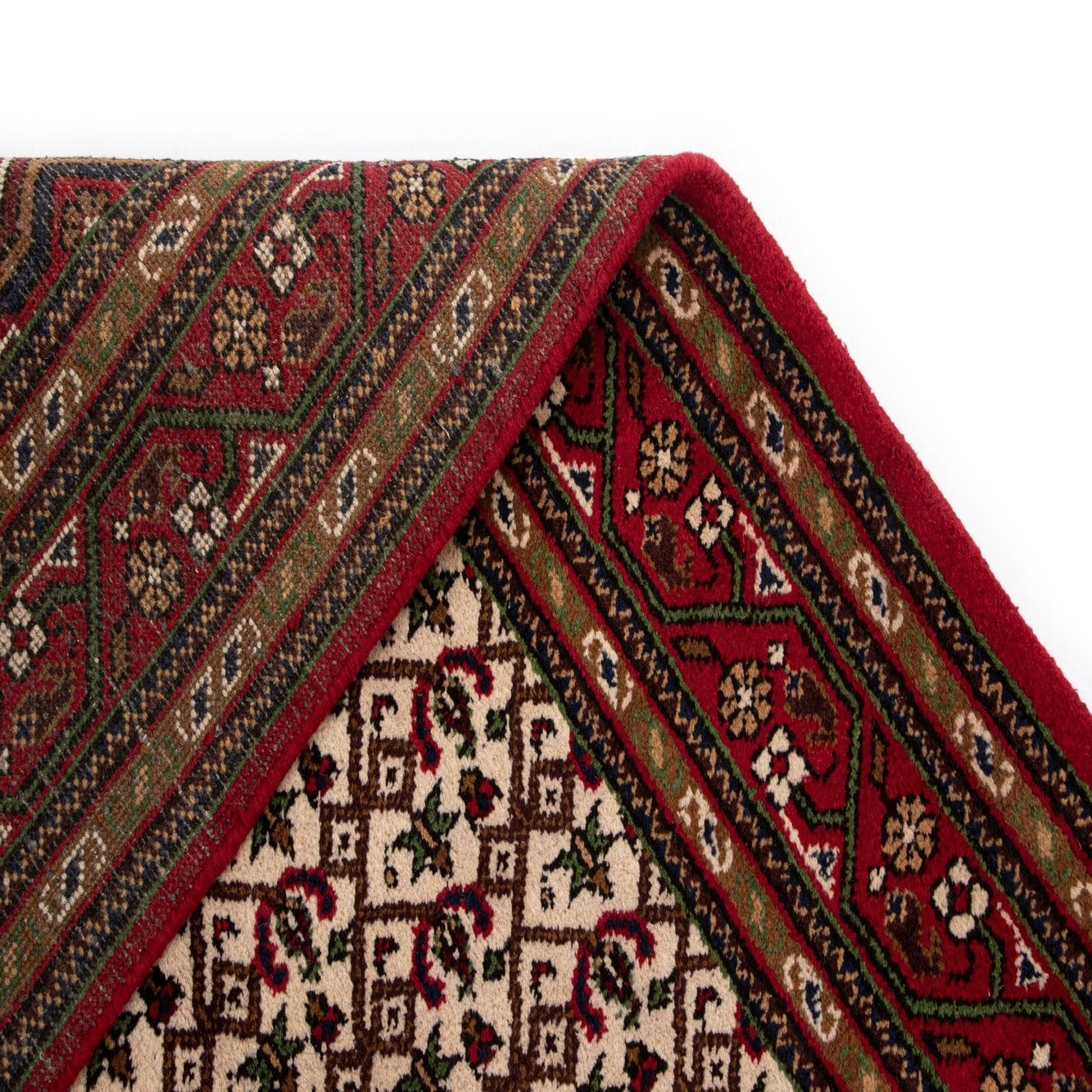 Primary color is Red. Colors in this rug include: Red, Red, Beige, Brown, Green, Blue, Black.