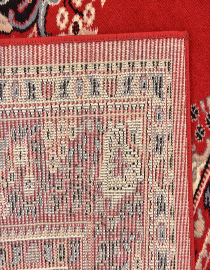 Primary color is Red. Colors in this rug include: Red, Black, Cream, Gray, Tan.