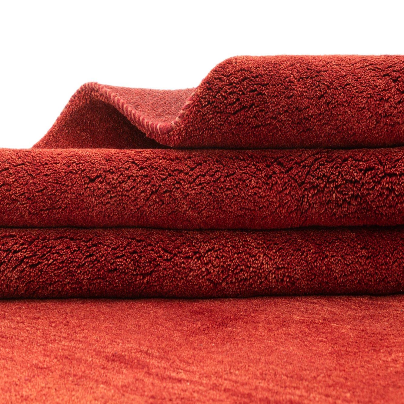 A 6x9 rectangular Gabbeh Shouli rug in rich red, handmade from virgin wool with a modern, solid design.