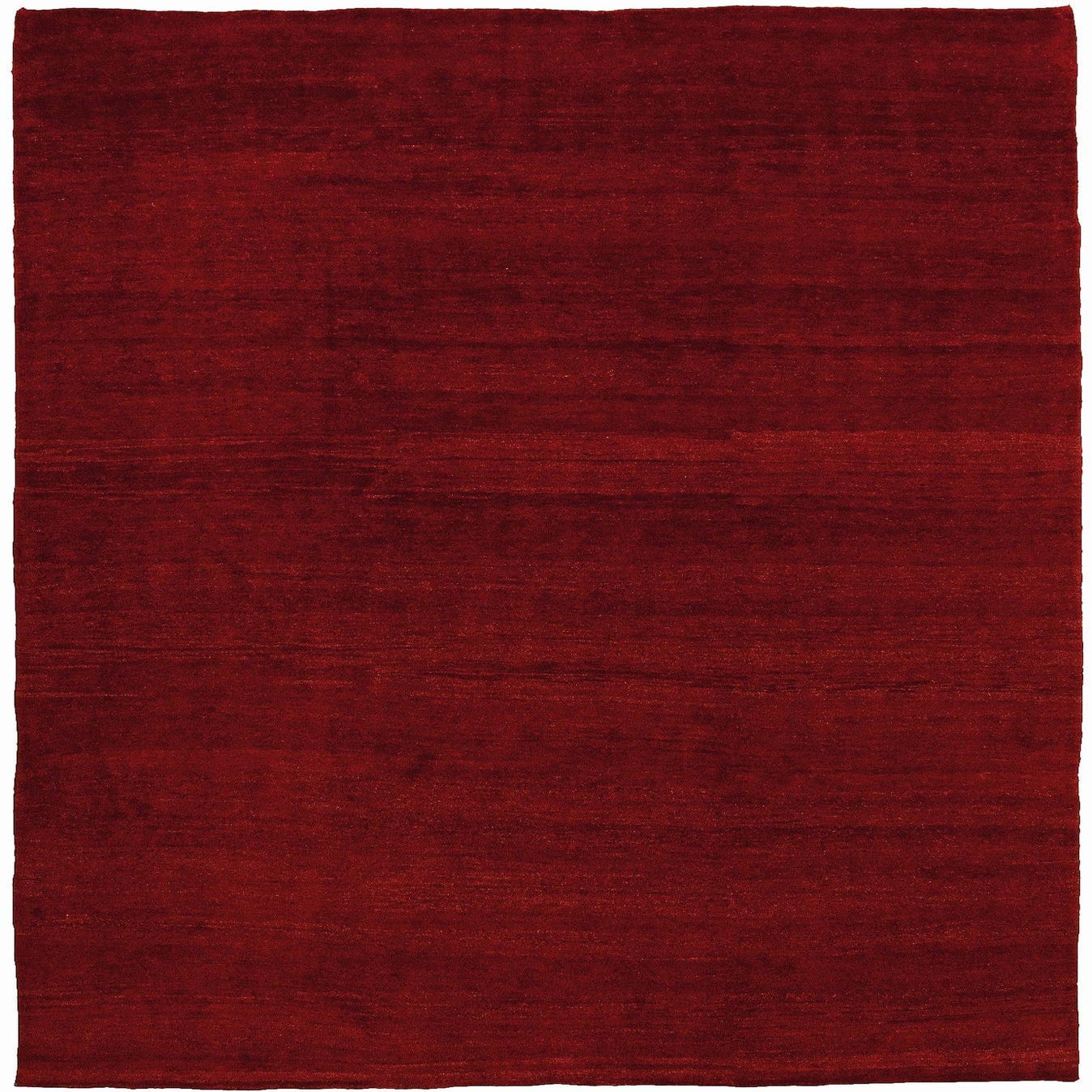A 6x9 rectangular modern Gabbeh Shouli area rug in rich red sheep virgin wool, handmade with a medium pile.