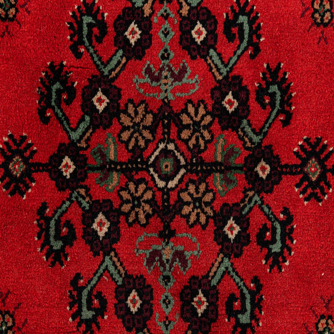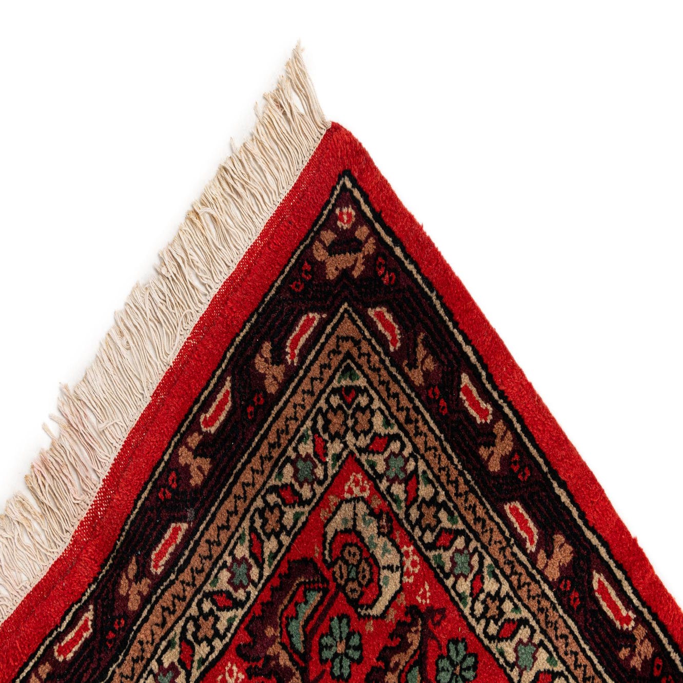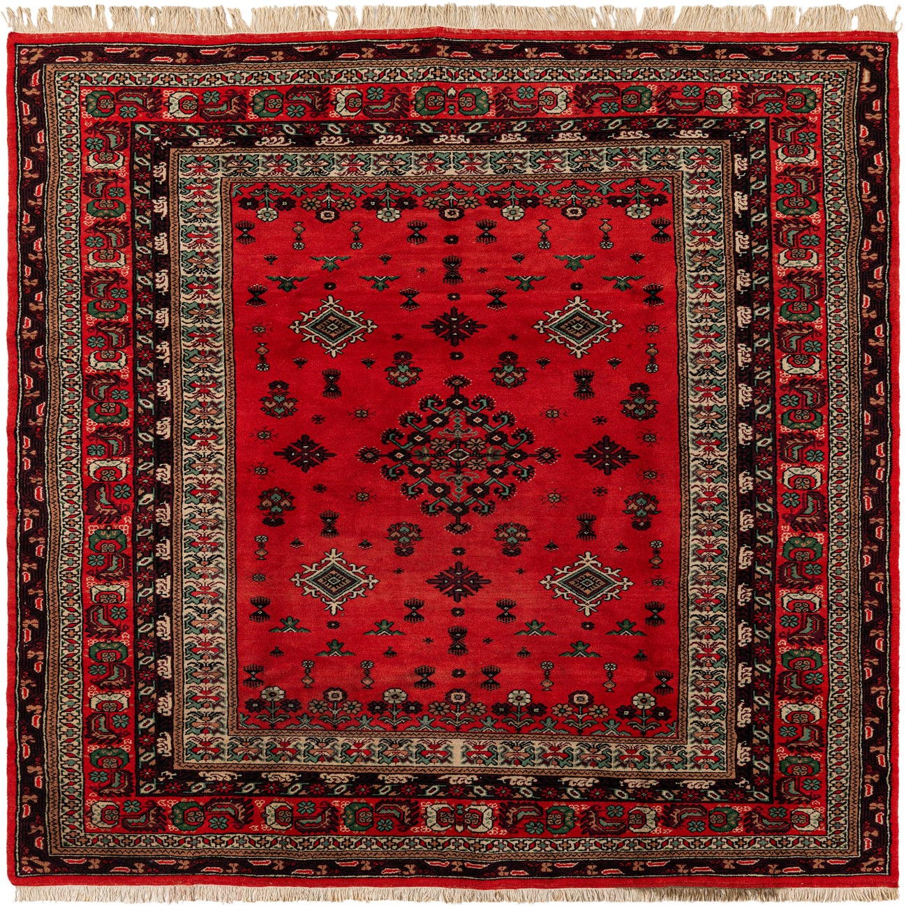 Primary color is Red. Colors in this rug include: Red, Beige, Black, Green, Ivory, Brown, Burgundy, Yellow.