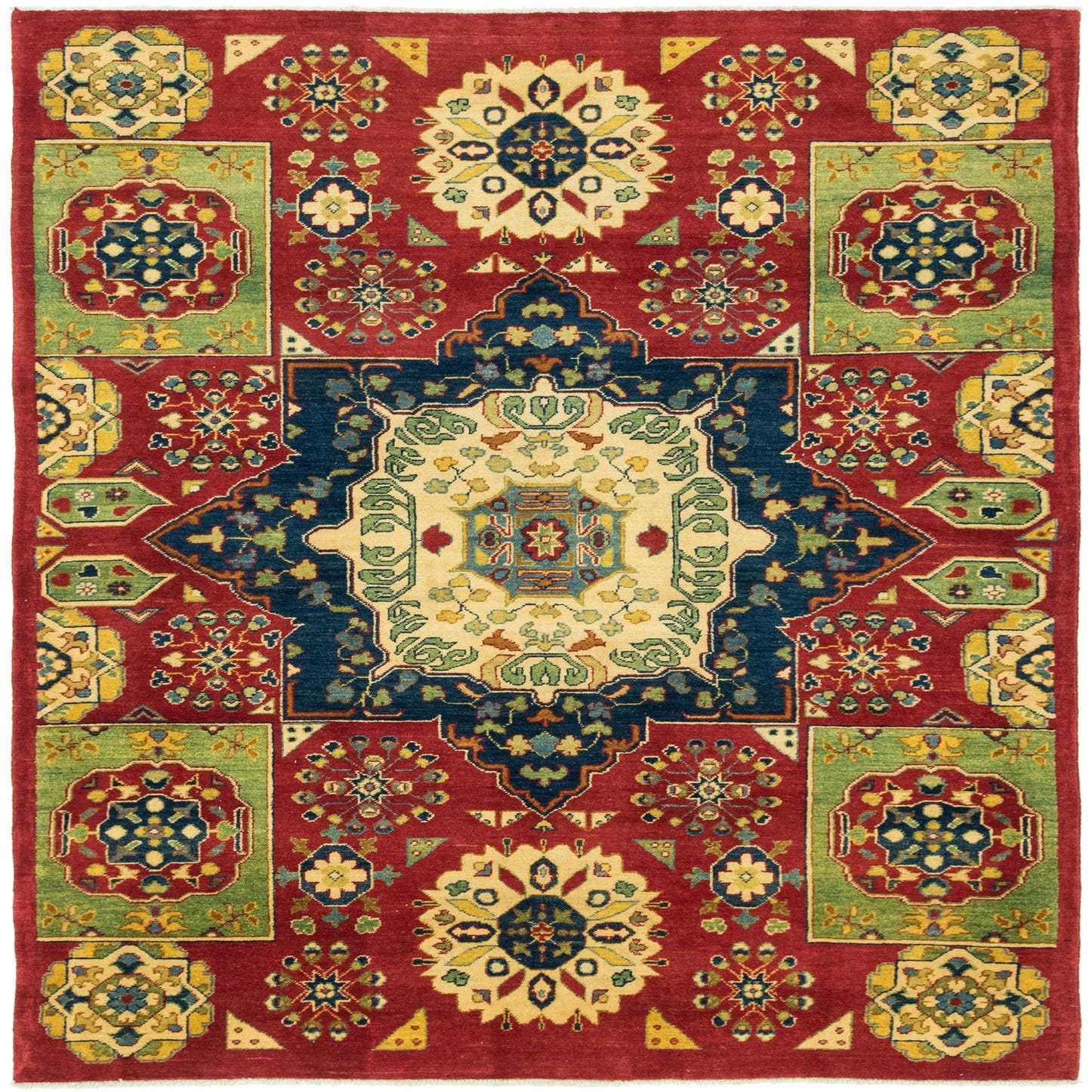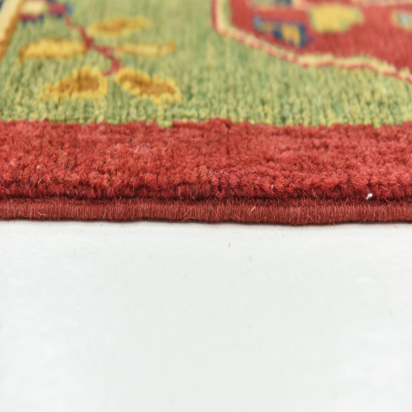 Hand Knotted of 100% Hand Spun Wool, the pile feels substantial and slightly plush underfoot, with the hand-spun yarn offering subtle tonal variation and a soft, natural luster. This rug works well beneath a low coffee table in a living room, layered in a cozy study with leather seating, or placed in an entryway to introduce color and pattern. It pairs particularly well with warm wood furniture and neutral upholstery for a classic look, or with mixed textiles and global accents for an eclectic, collected feel.