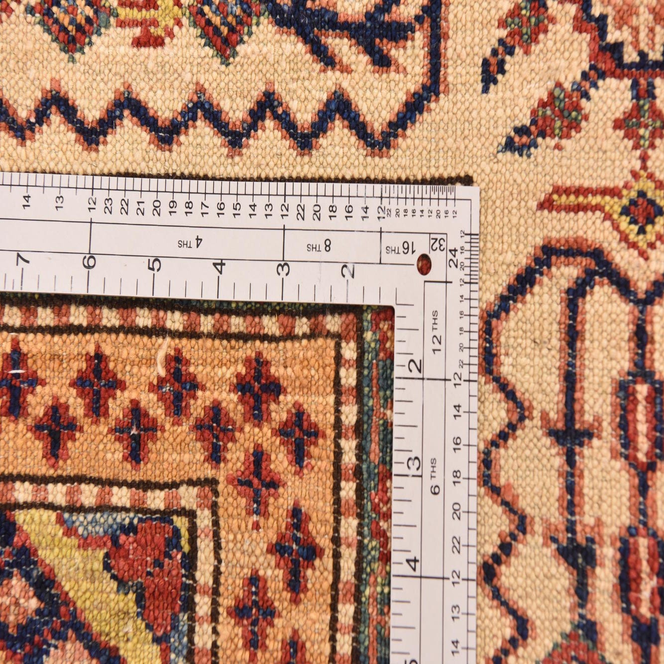 As a product of meticulous craftsmanship, this Kazak rug can seamlessly integrate into spaces that appreciate cultural heritage and artisanal charm. Whether placed on hardwood floors or layered over carpet, it will contribute a touch of warmth and texture to the desired area.