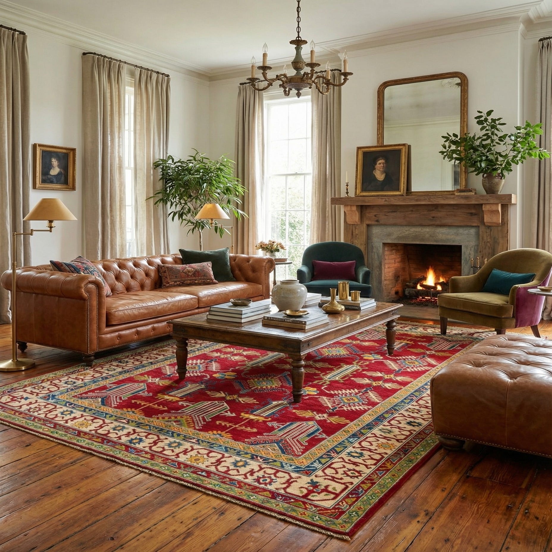 Ideal for adding warmth and sophistication, this Kazak rug would be a perfect addition to an office or living room that echoes classic or traditional decor. It pairs well with dark wooden furniture, leather pieces, and can substantially enhance rooms with neutral color palettes, drawing the eye with its ornate design. Its resilient woolen construction also makes it suitable for dining areas where it can bring a sense of grandeur to dinner engagements.