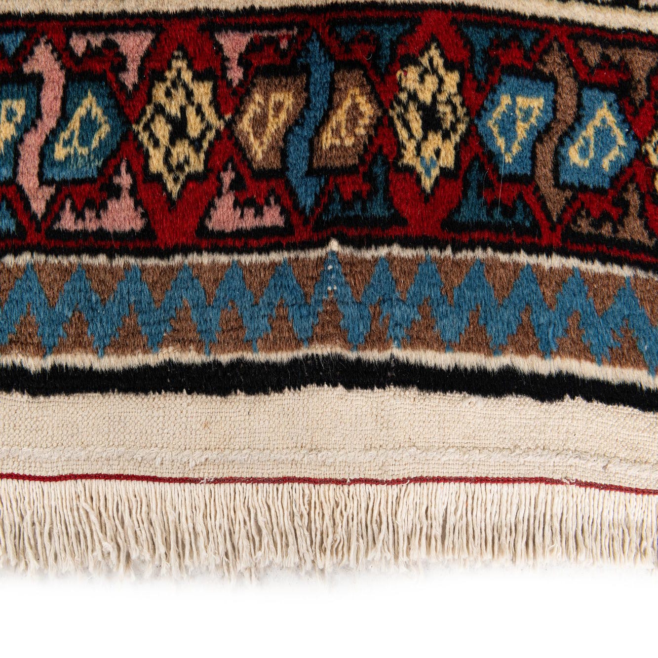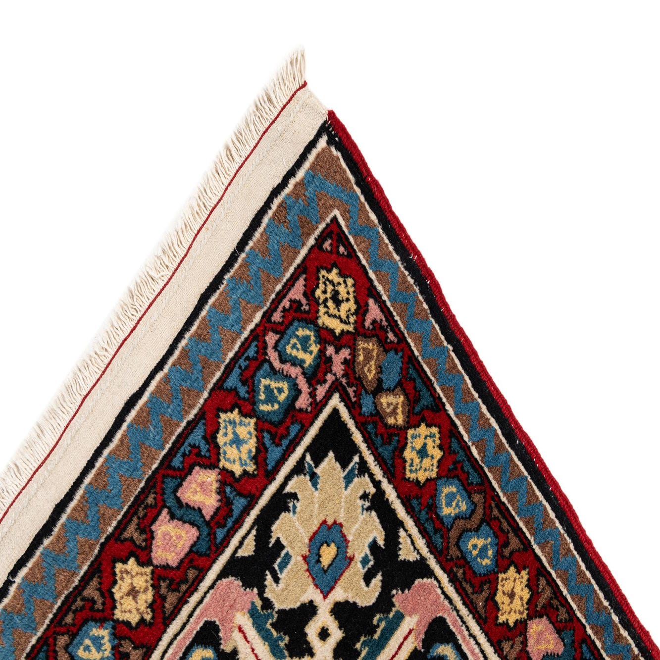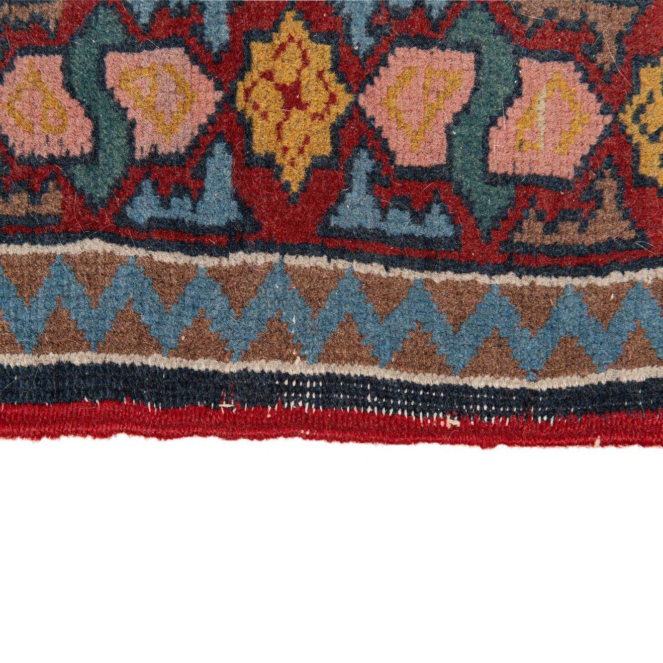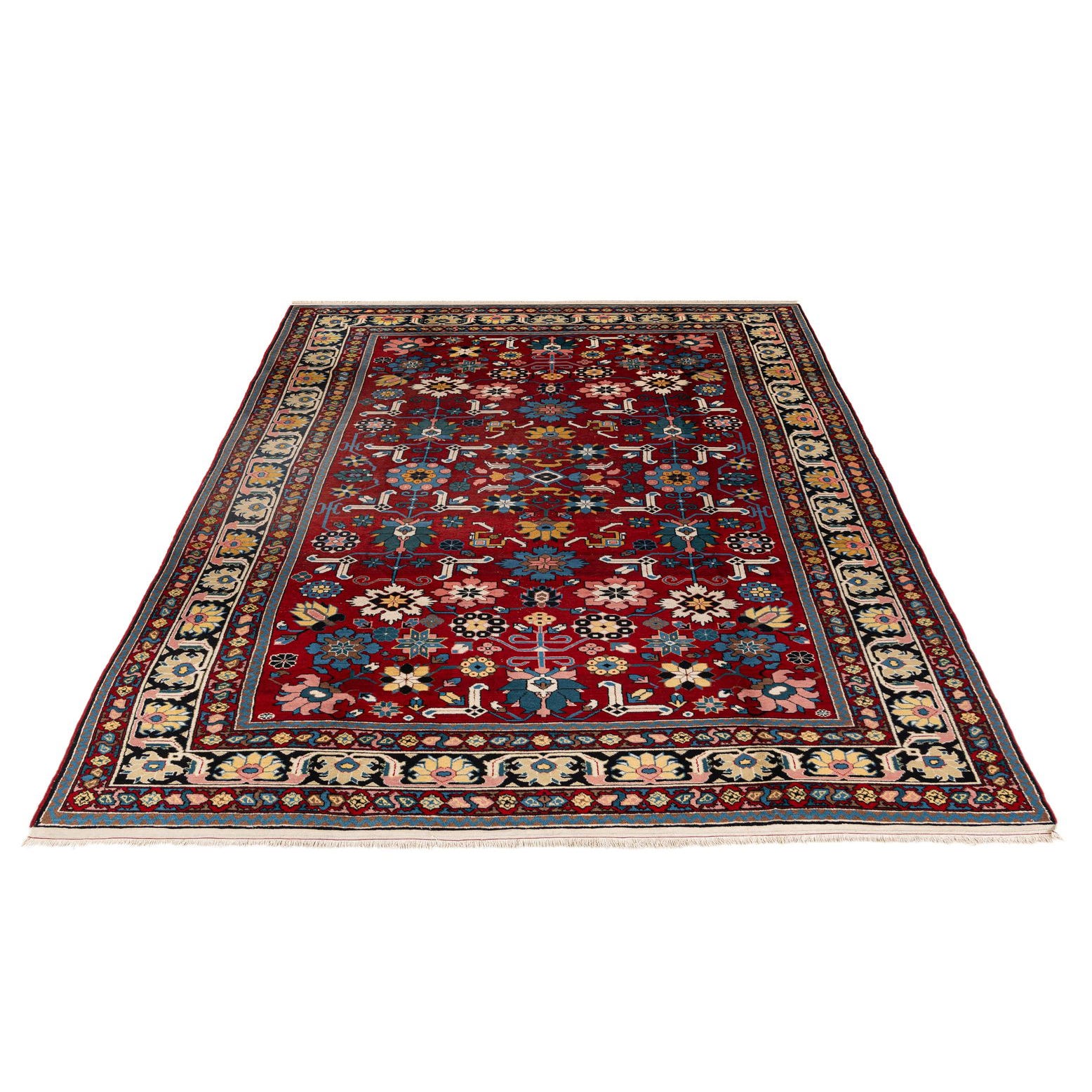 Primary color is Red. Colors in this rug include: Red, Beige, Brown, Blue, Navy Blue, Ivory, Light Blue, Yellow, Pink.
