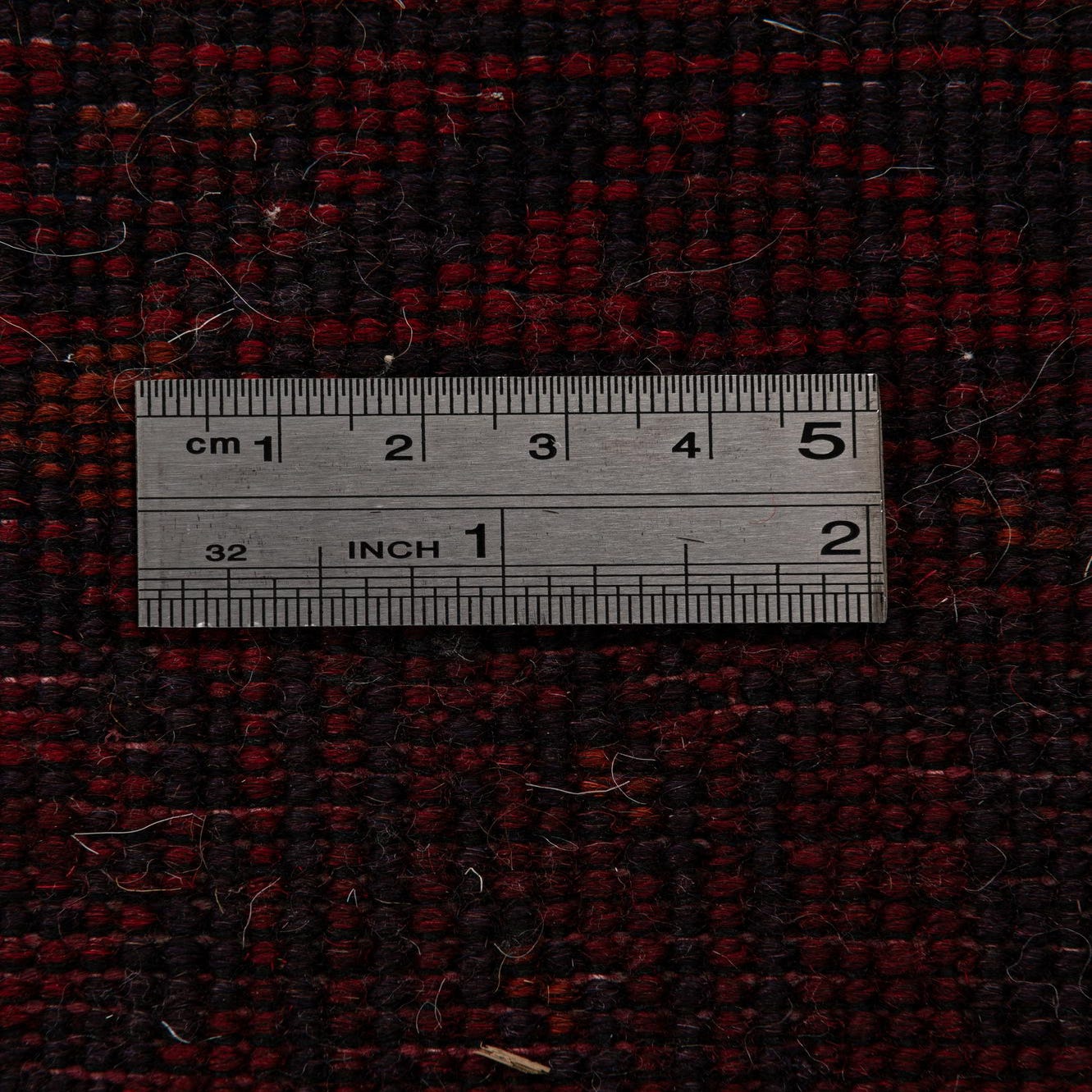 Primary color is Red. Colors in this rug include: Red, Black, Brown.
