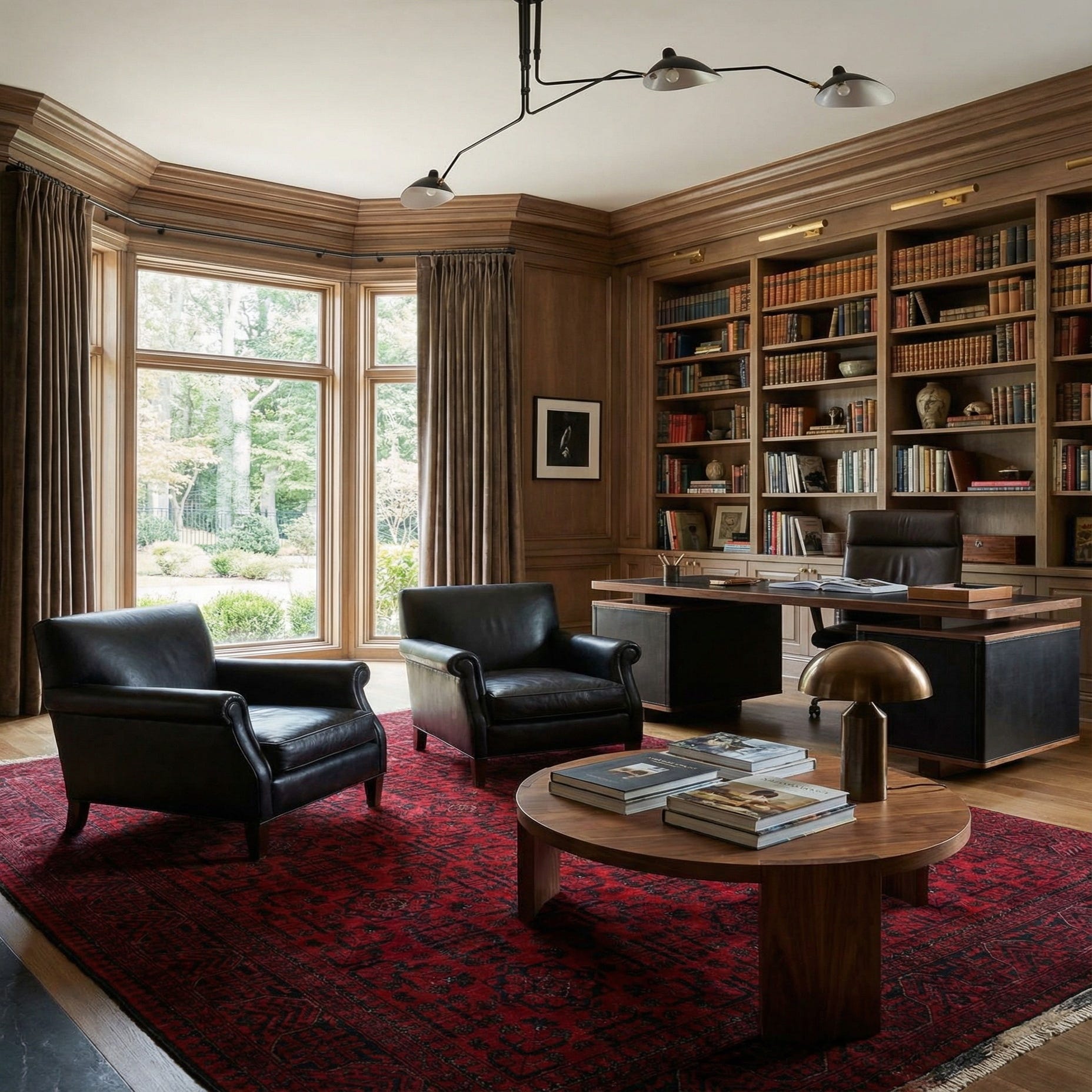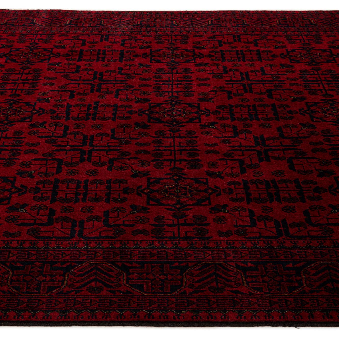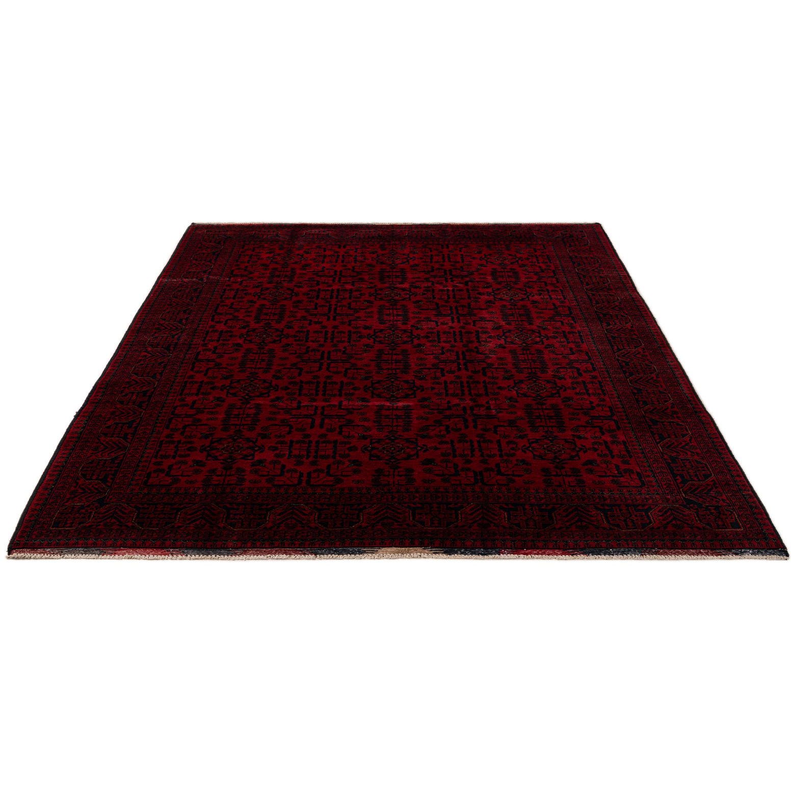A 6x9 rectangular Khal Mohammadi rug in deep red with intricate black Oriental patterns and a decorative border.