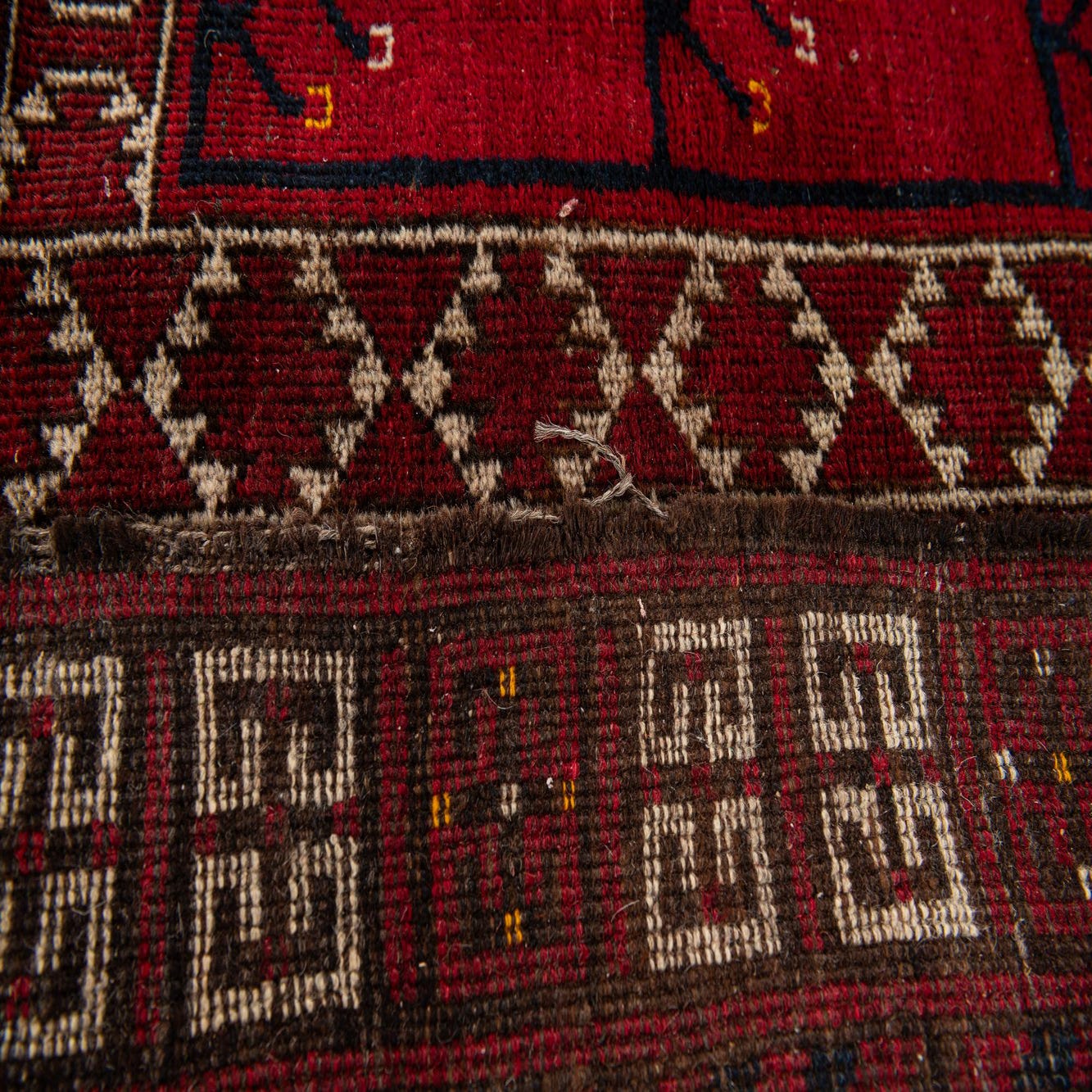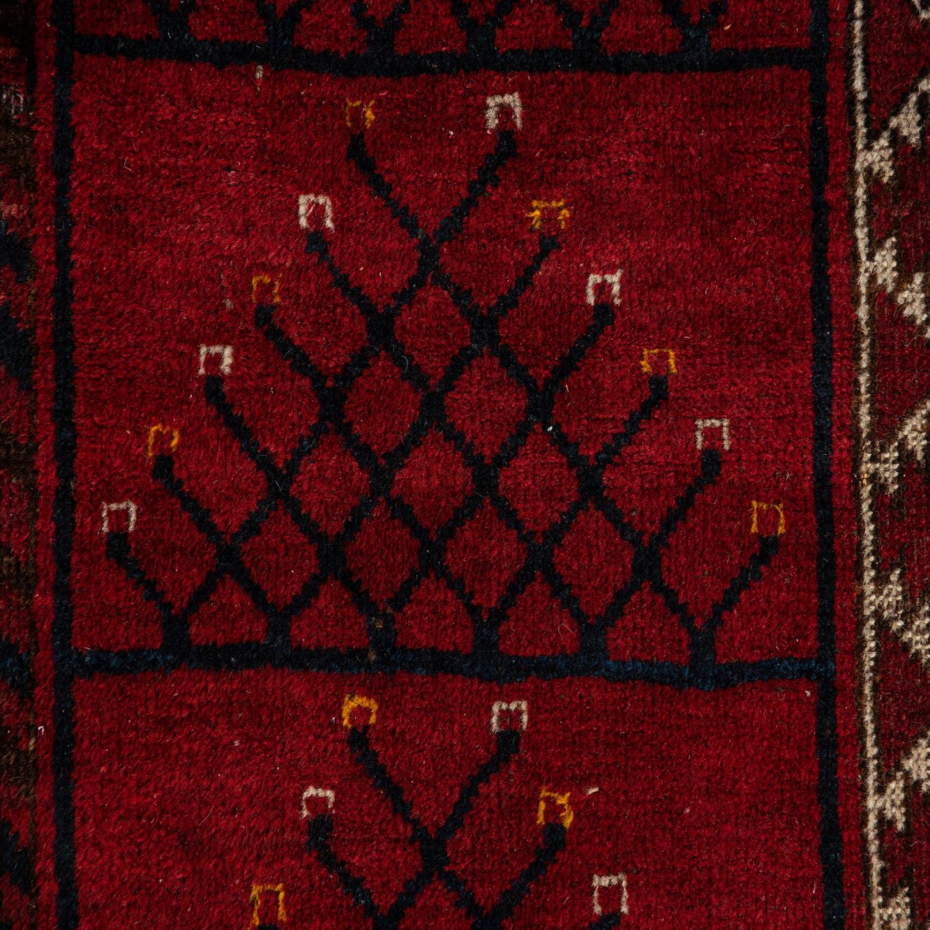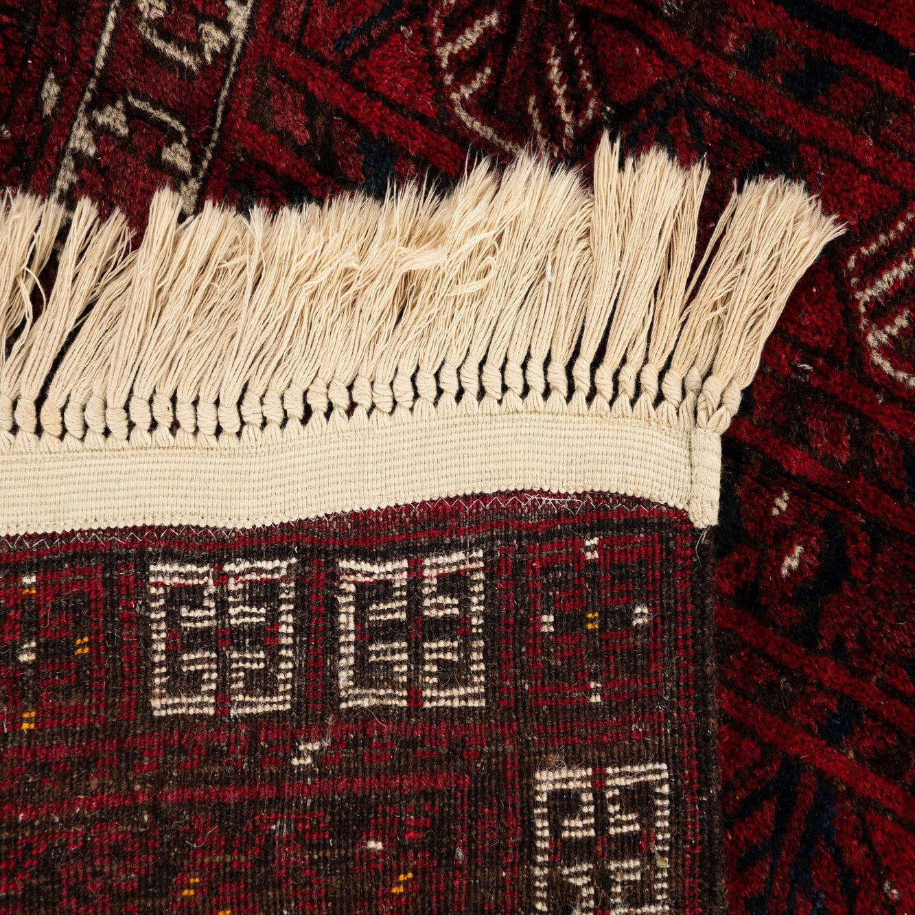 A 6x9 rectangular Khal Mohammadi wool rug in deep reds with a central geometric pattern and intricate border.