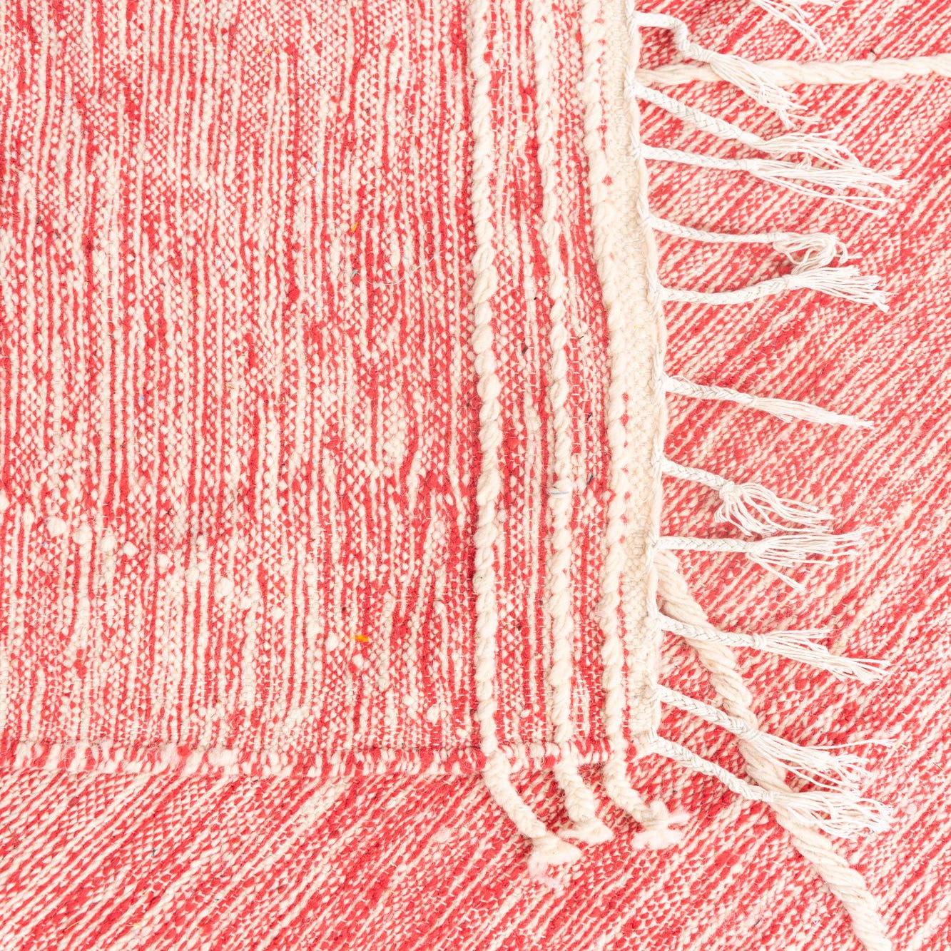 Primary color is Red. Colors in this rug include: Red, Ivory.