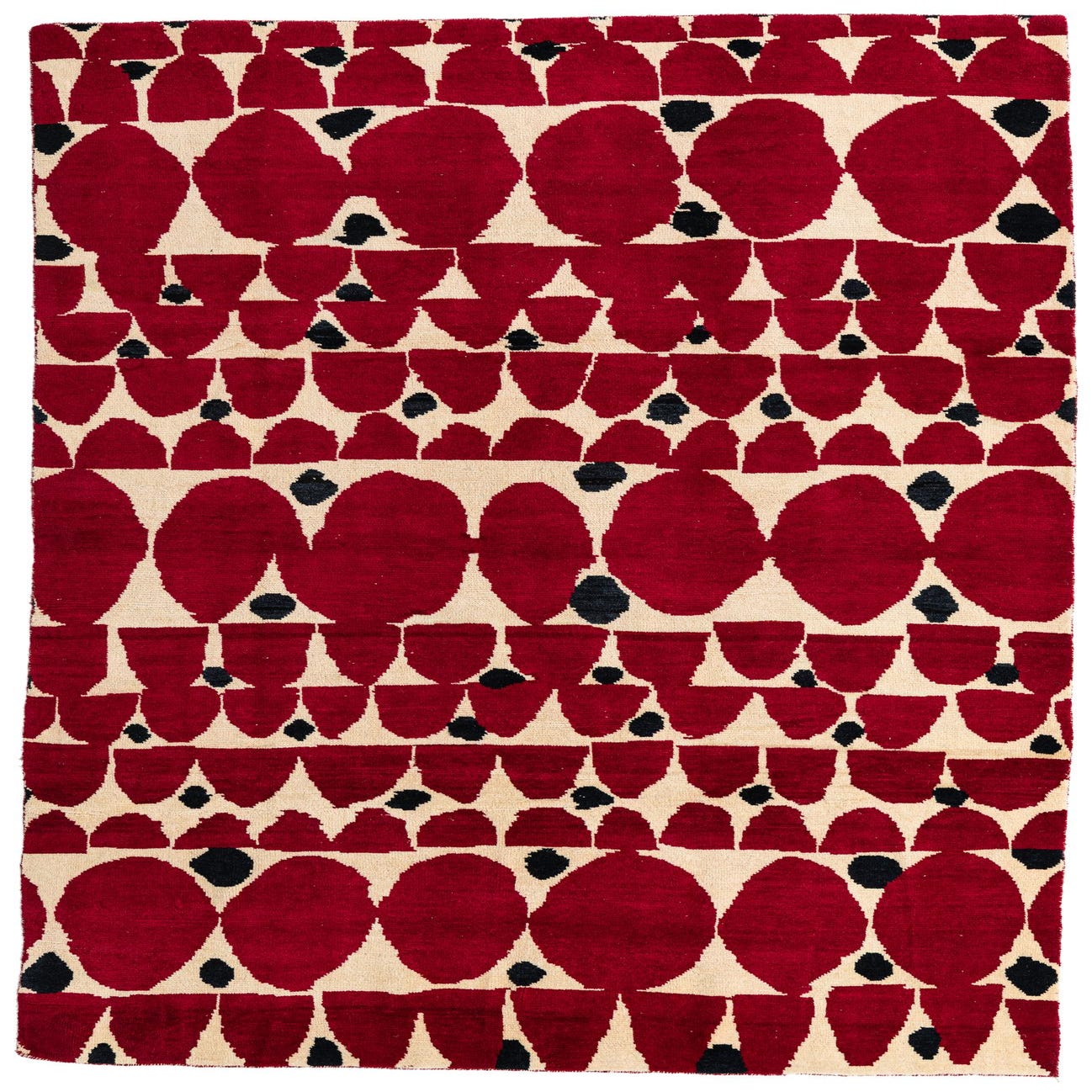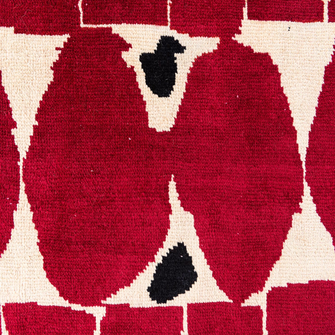 Primary color is Red. Colors in this rug include: Red, Black, Ivory.